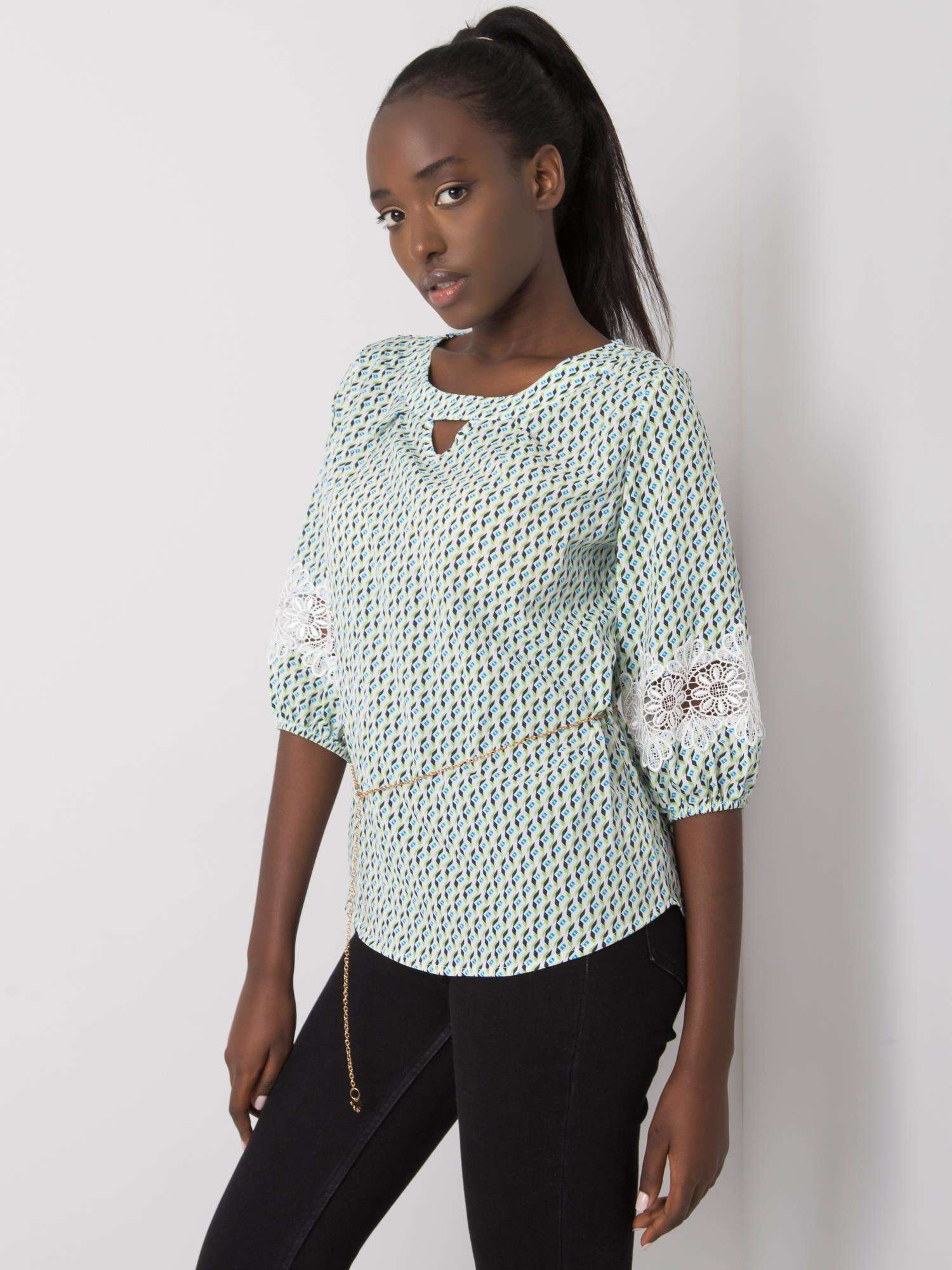 Biało-zielona wzorzysta bluzka damska.