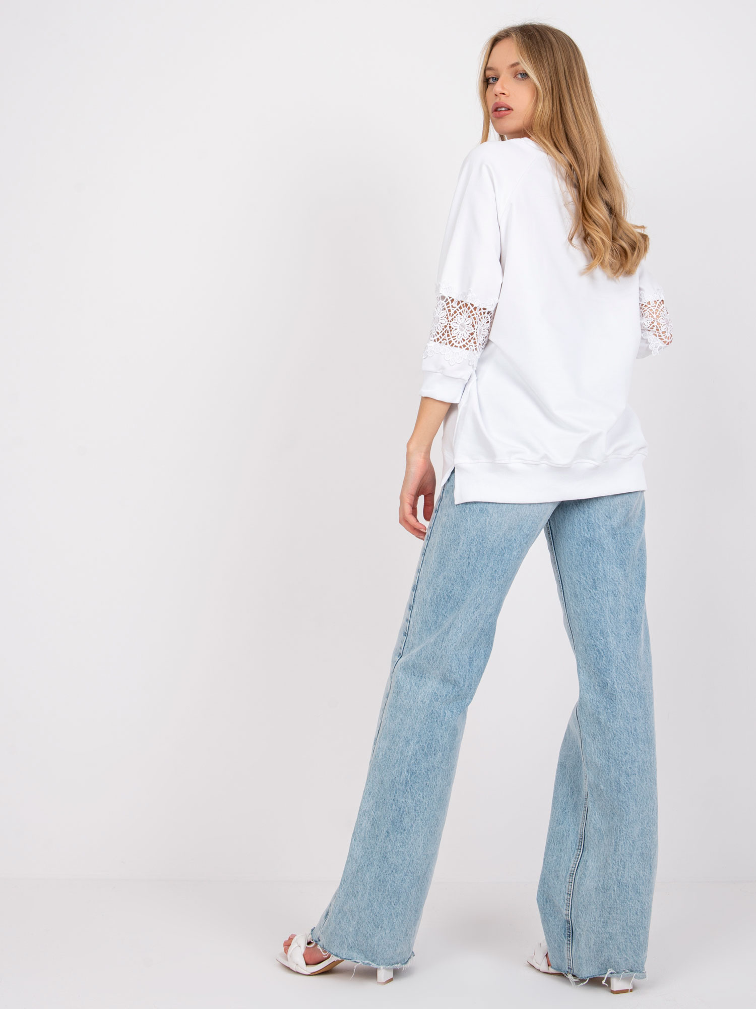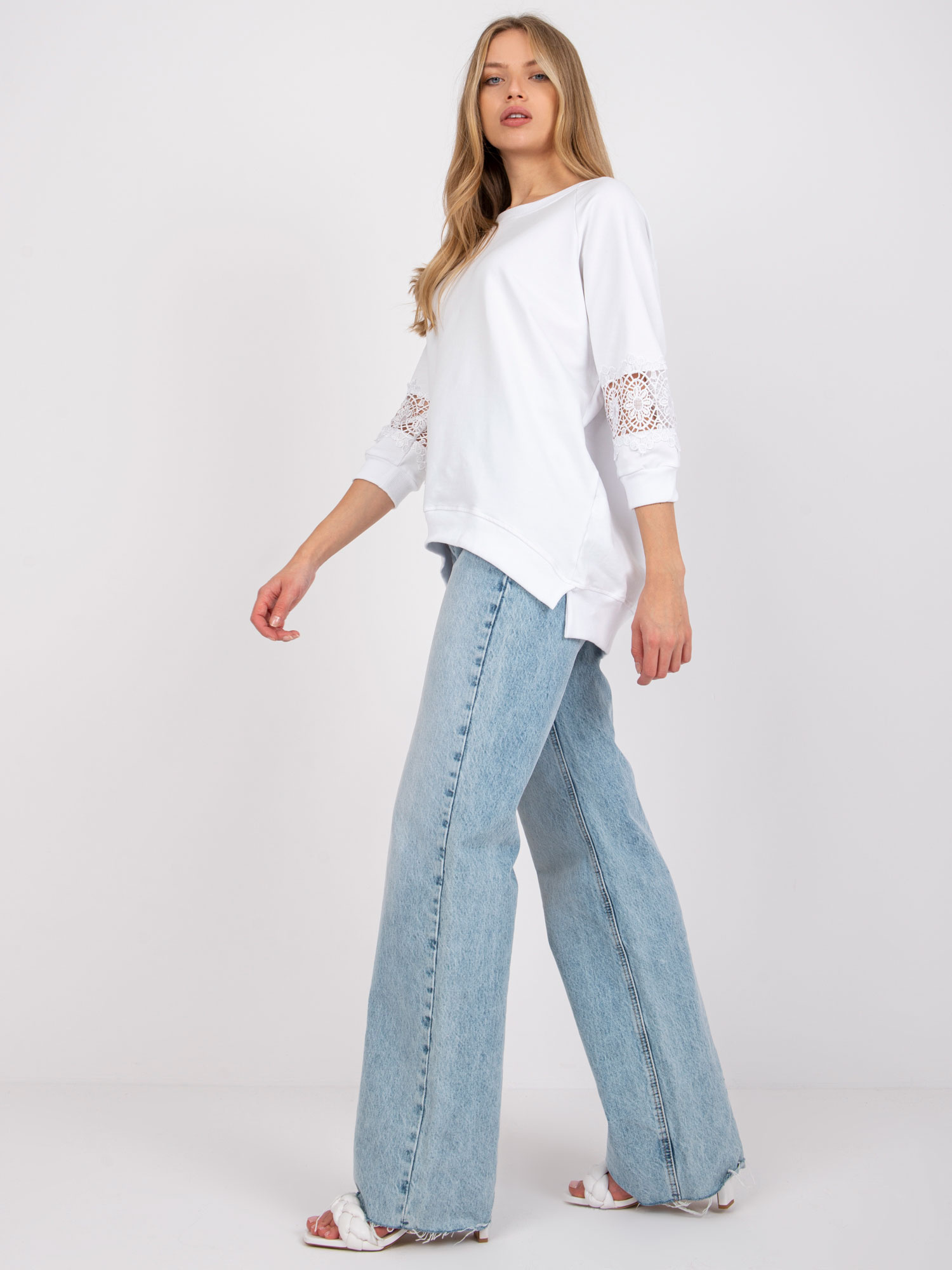 Wymiary bluzki w rozmiarze S/M mierzone na płasko: szerokość pod pachami – 63 cm, długość całkowita – 67 cm, długość rękawa – 44 cm