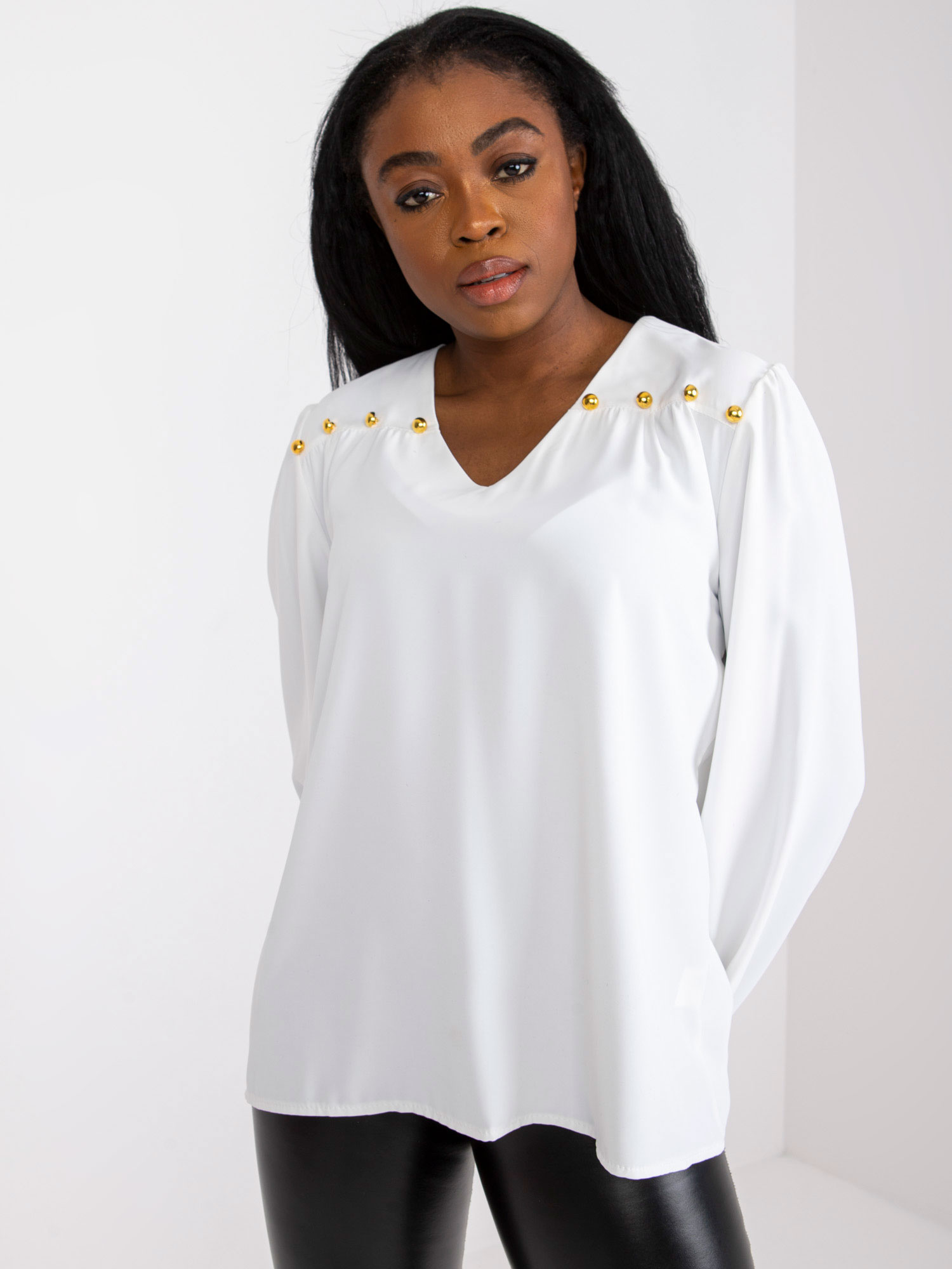 Wymiary bluzki w rozmiarze one size mierzone na płasko: szerokość pod pachami – 54 cm, długość całkowita – 64 cm, długość rękawa – 64 cm.