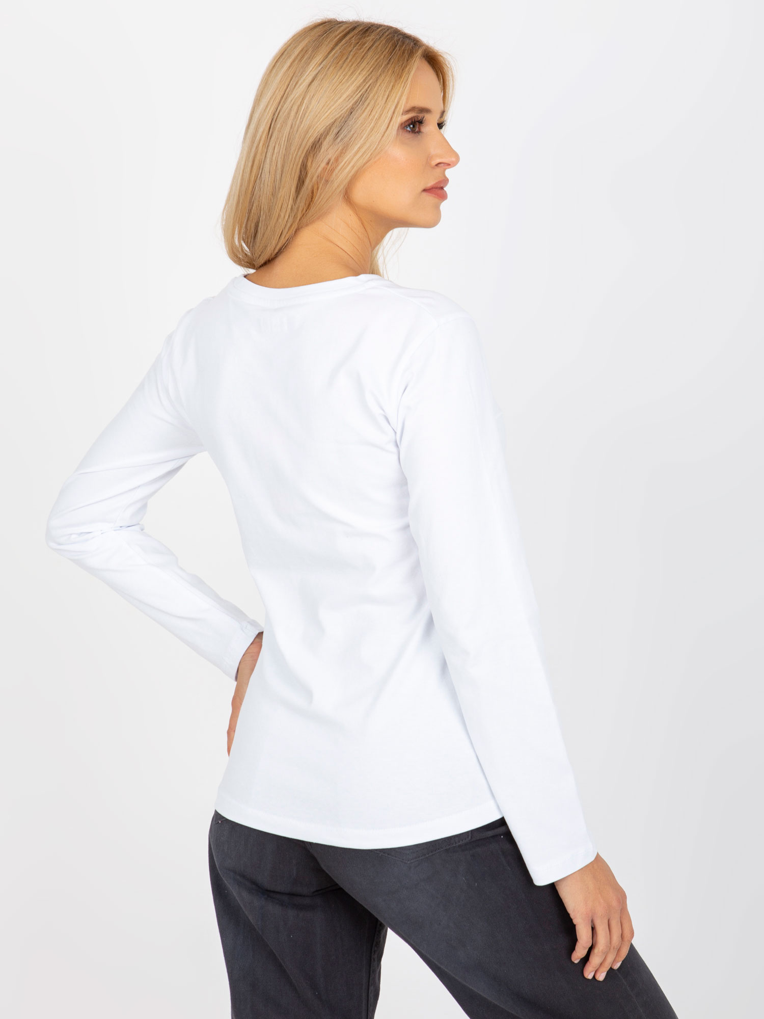 Biała bawełniana bluzka longsleeve .
