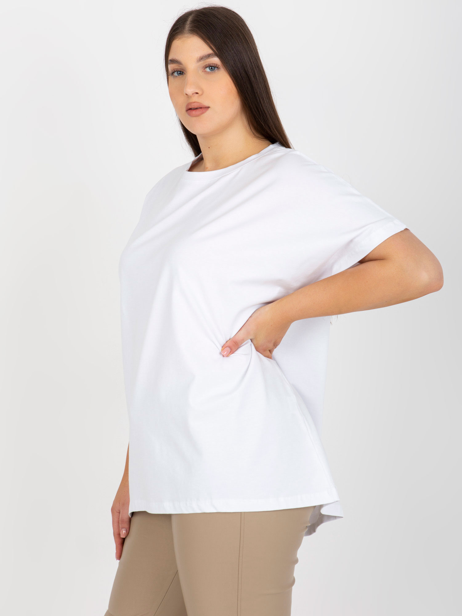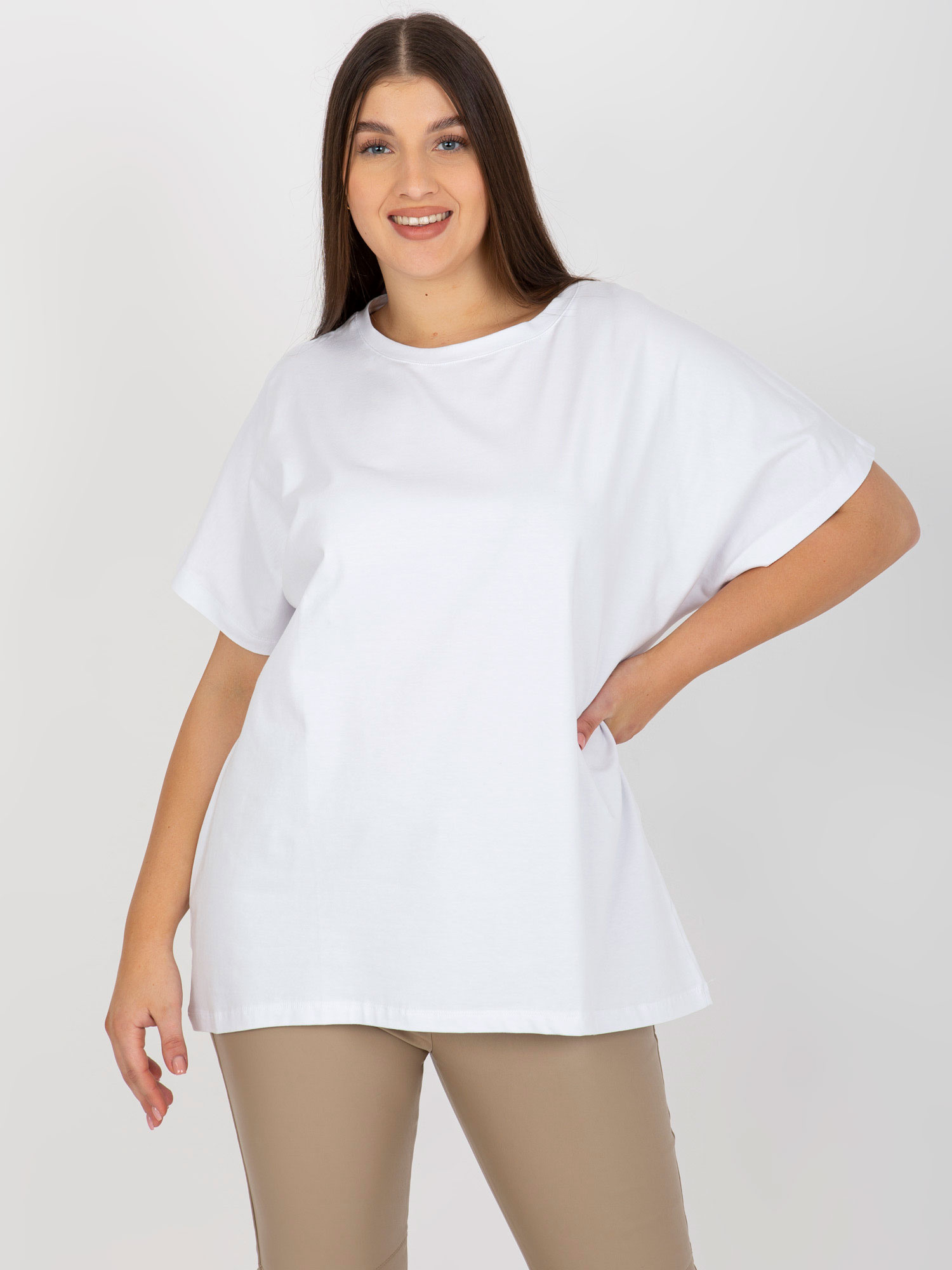 Biała luźna bluzka plus size basic z okrągłym rękawem .