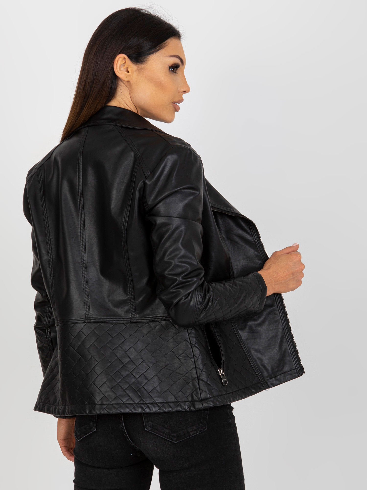 Modelka ma na sobie rozmiar one size. Wymiary modelki: wzrost 180 cm, biust 113 cm, talia 93 cm, biodra 123 cm.