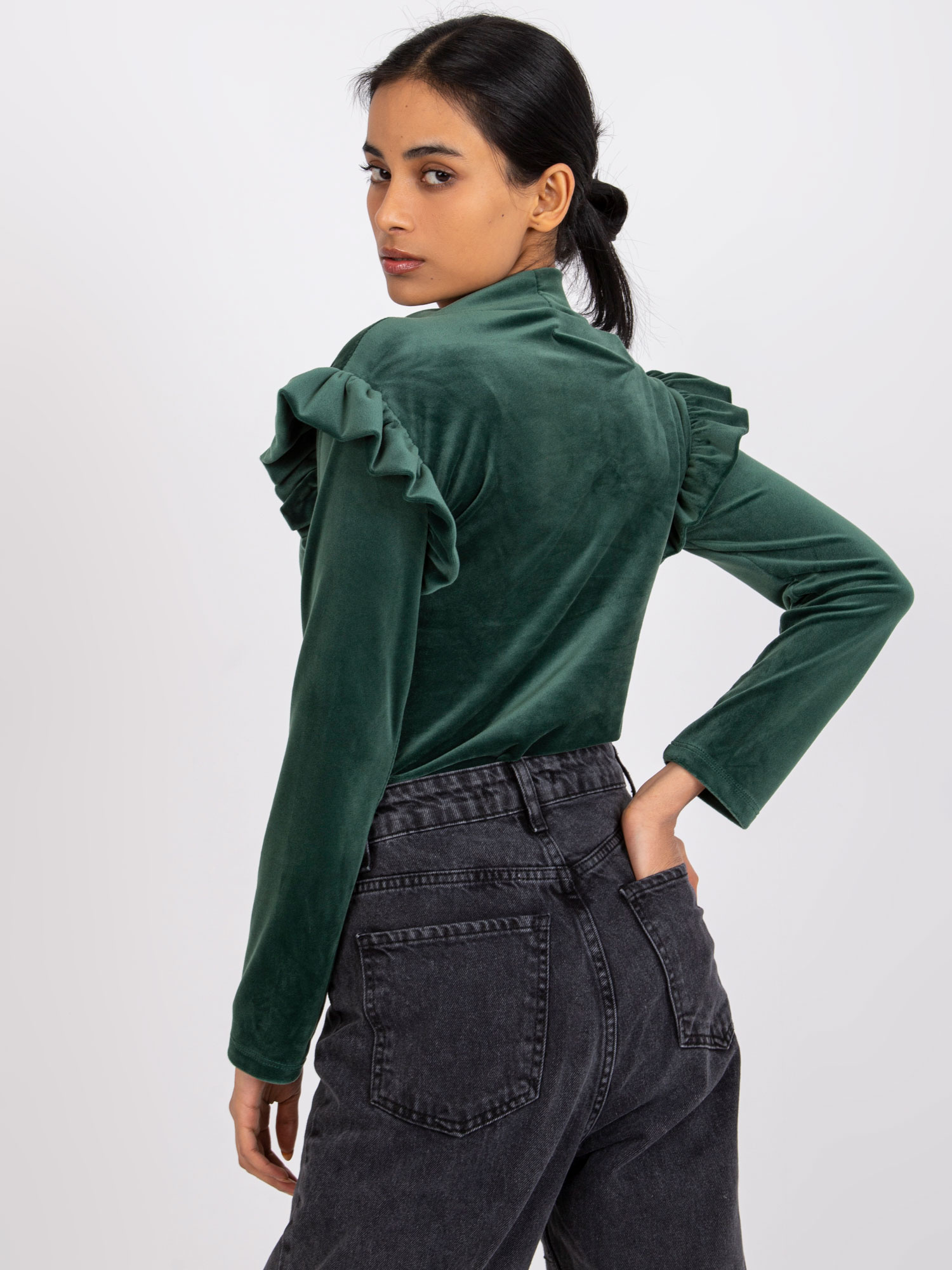 Wymiary bluzki w rozmiarze S mierzone na płasko: szerokość pod pachami – 54 cm, długość całkowita – 61 cm, długość rękawa – 40 cm