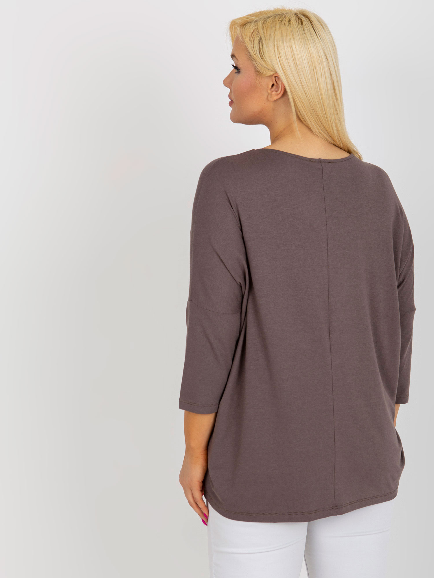 Brązowa bluzka plus size basic z rękawem 3/4 .