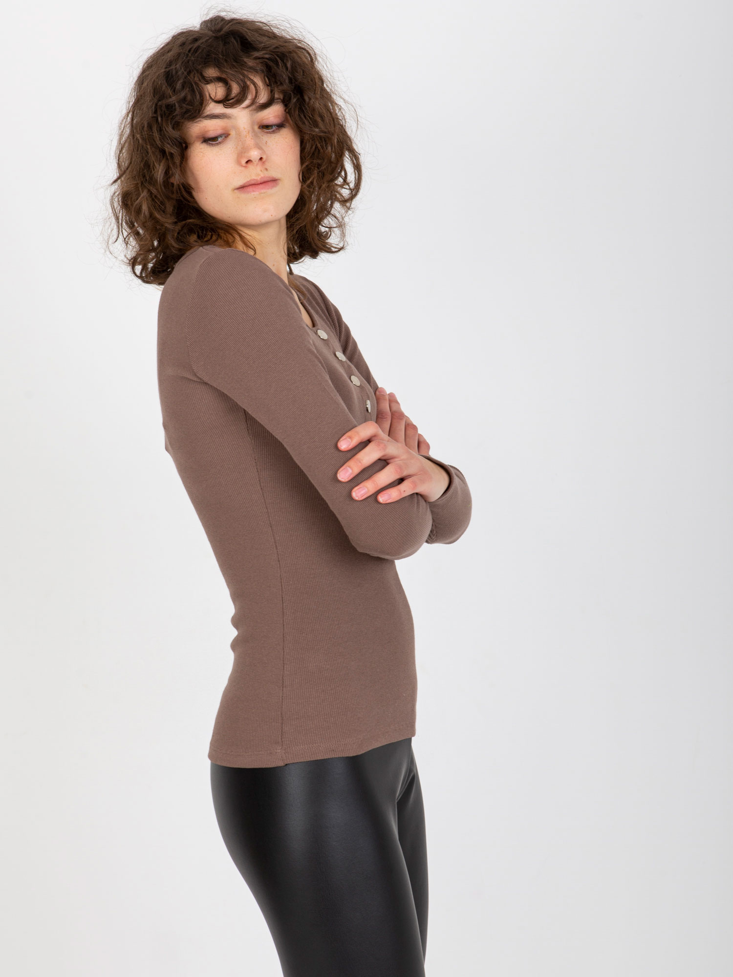 Brązowa prążkowana bluzka basic z zatrzaskami Bliss .