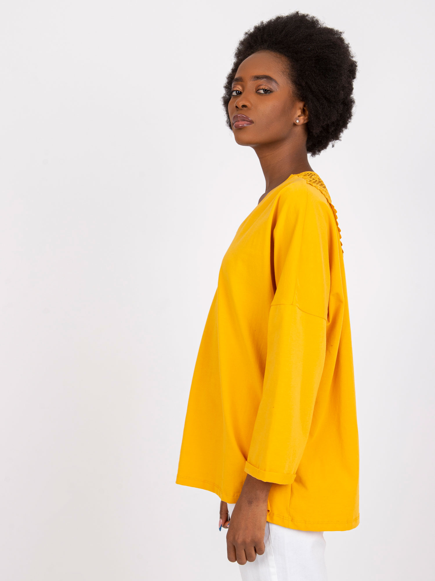 Bluzki basic, która czekają na Ciebie w naszym sklepie internetowym, to niezastąpiony element kobiecej garderoby. Ich zalety doceniają znawczynie mody z całego świata, których celem jest łączenie wygody i gorących trendów w codziennym looku. Prezentowany model został wykonany z tkaniny najwyższej jakości, dzięki czemu zachowuje swój modny kształt przez naprawdę długi czas. Z tą bluzką w niezwykle oryginalnym odcieniu stworzysz wiele udanych stylizacji. Śmiało zabieraj ją ze sobą do biura, na weekendowy wypad za miasto czy randkę w eleganckiej restauracji. Będzie się znakomicie prezentowała w towarzystwie wygodnych spodni dresowych oraz butów sportowych. W cieplejsze dni możesz ją zestawiać z szortami oraz wiązanymi sandałkami.