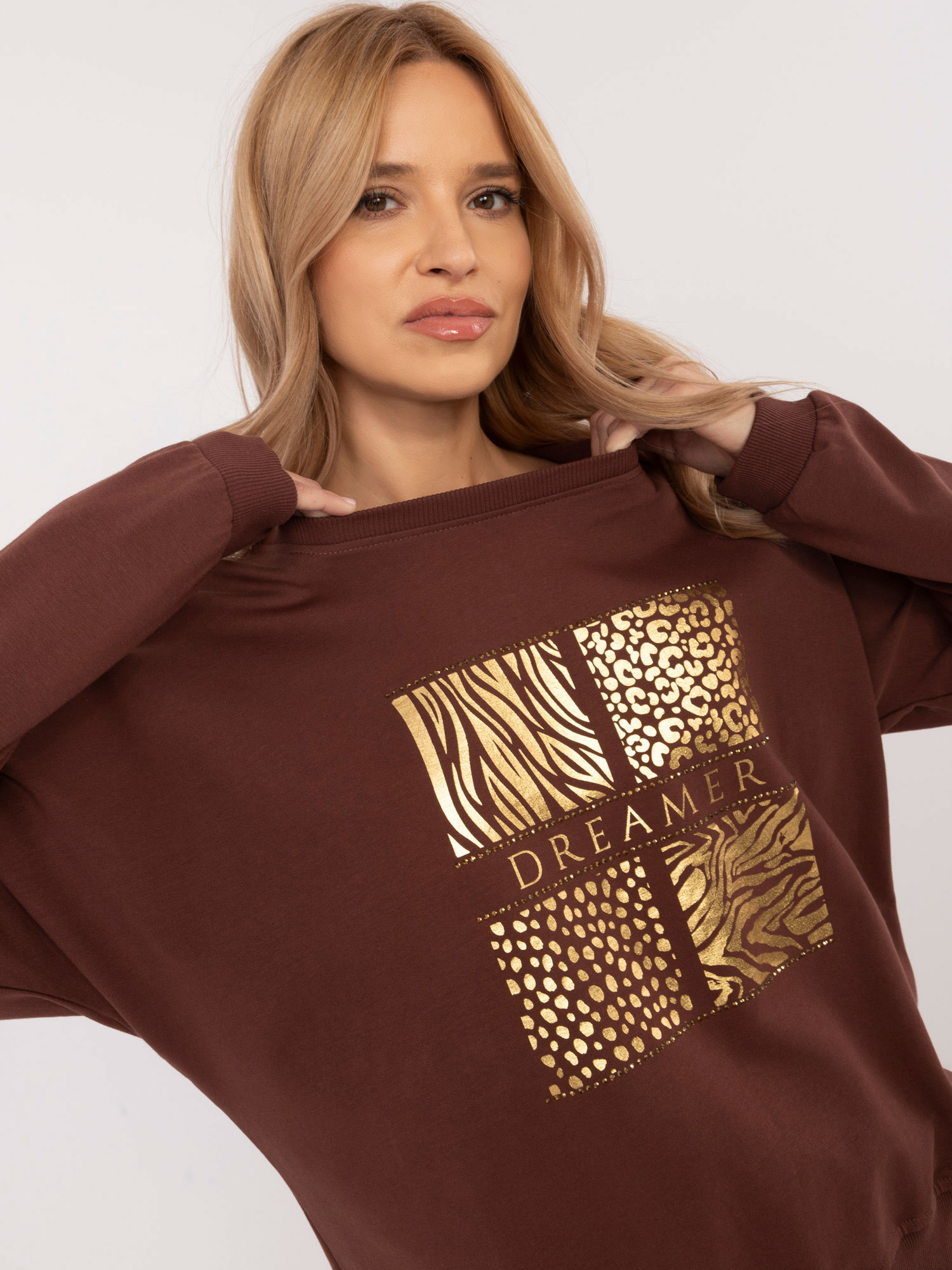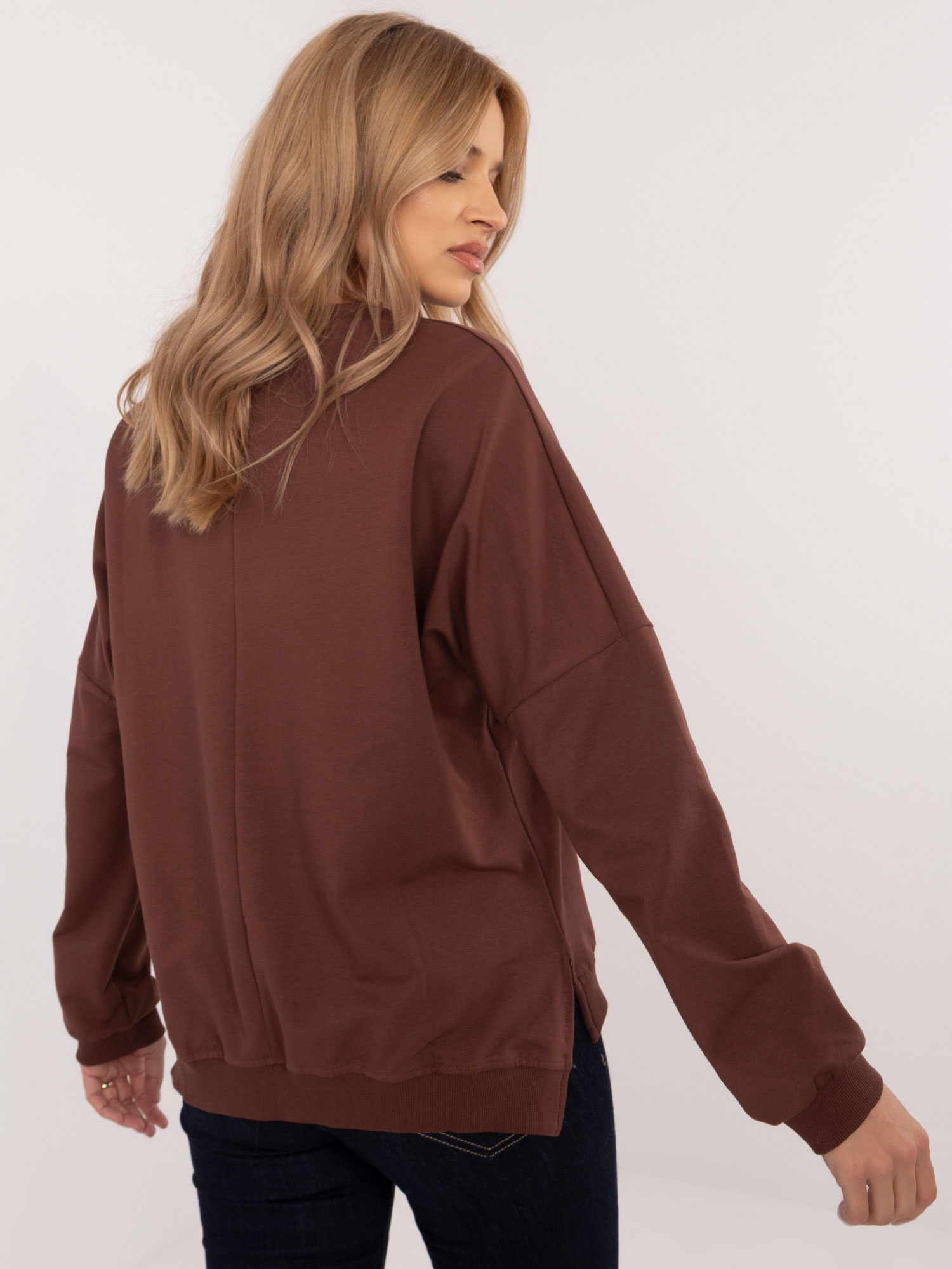 Wymiary bluzki w rozmiarze S mierzone na płasko: szerokość pod pachami – 65 cm, długość bluzy – 63 cm (przód), długość bluzy – 66 cm (tył), długość rękawa – 41 cm (od szwu).
