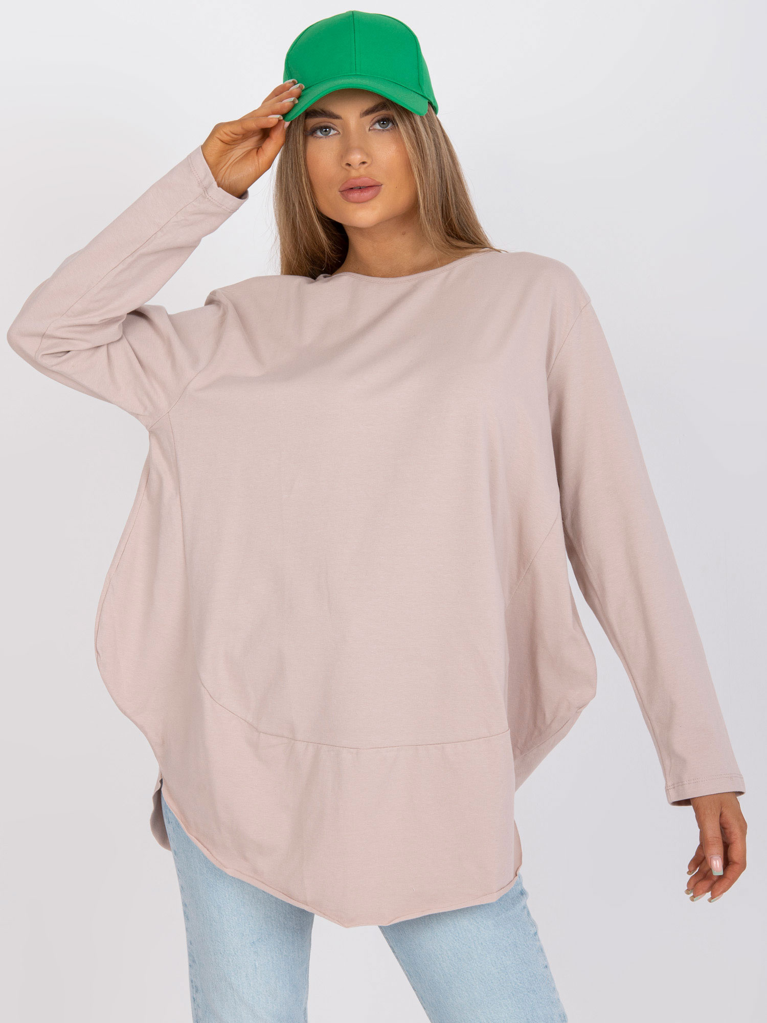 Wymiary bluzki w rozmiarze one size mierzone na płasko: szerokość pod pachami – 57 cm, długość całkowita – 81 cm, długość rękawa – 58 cm.