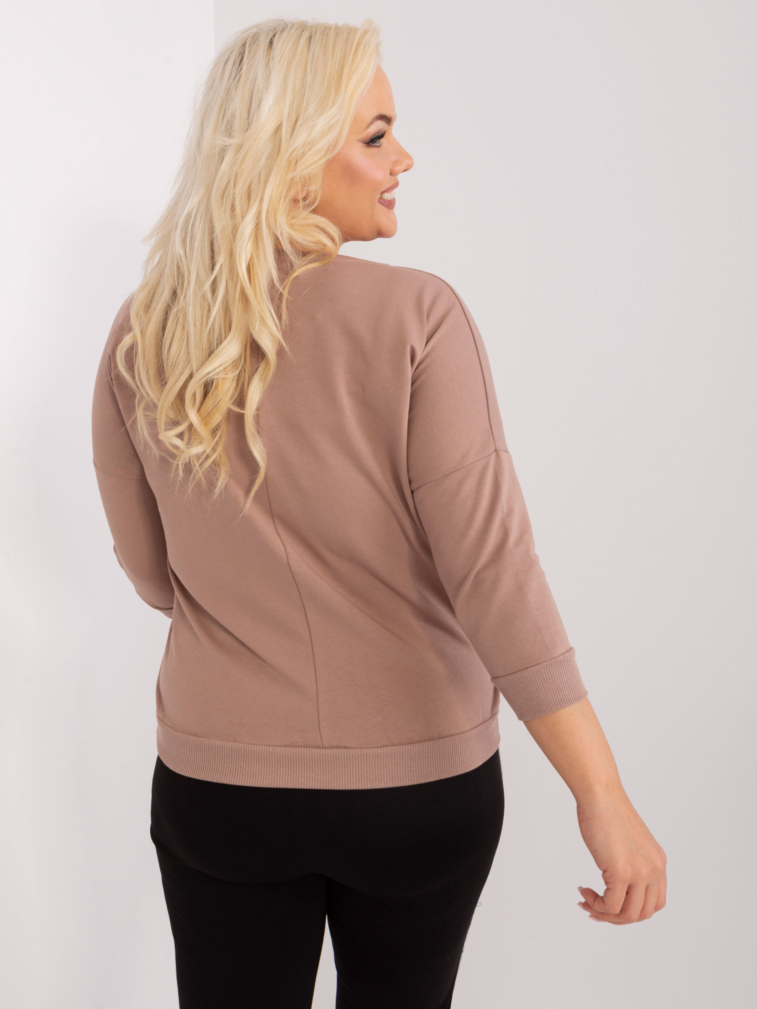 Ciemnobeżowa bluzka plus size z okrągłym dekoltem .