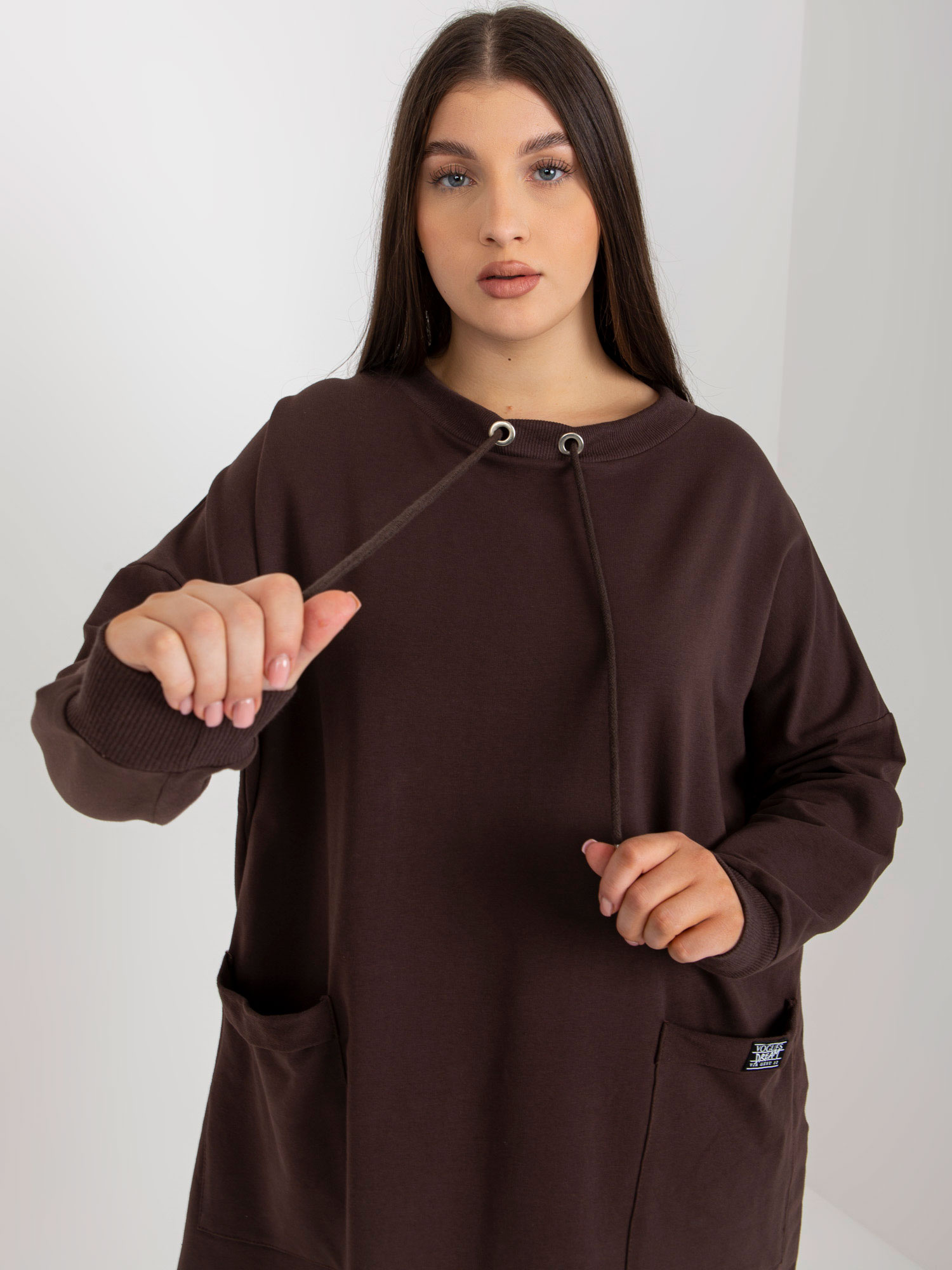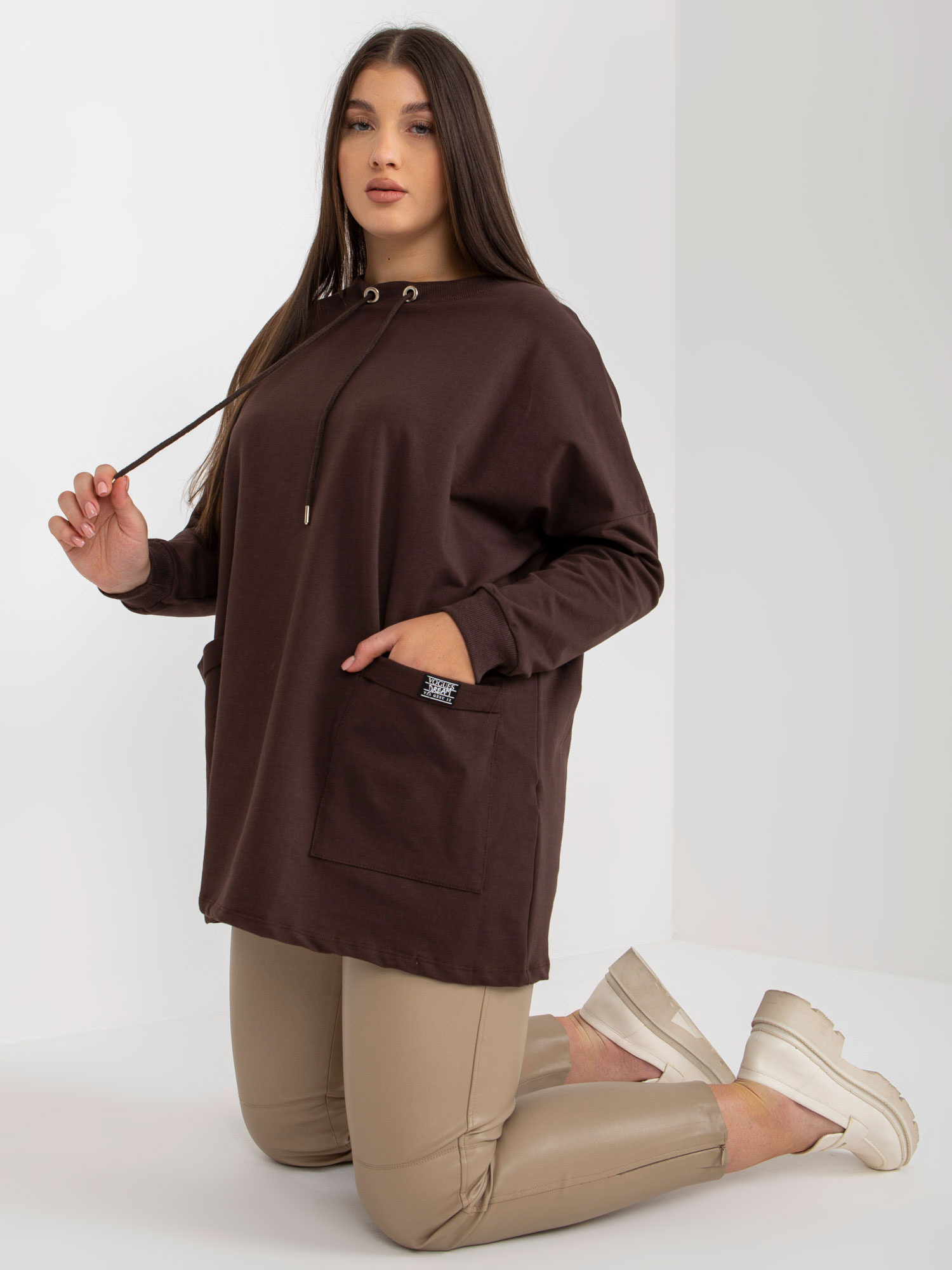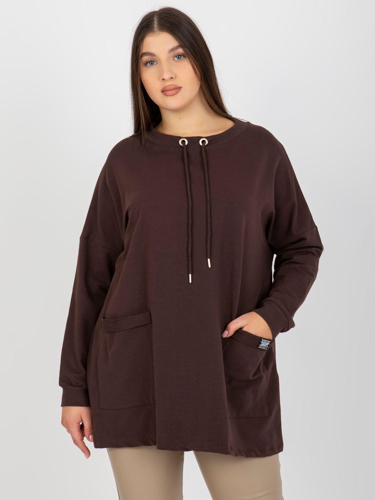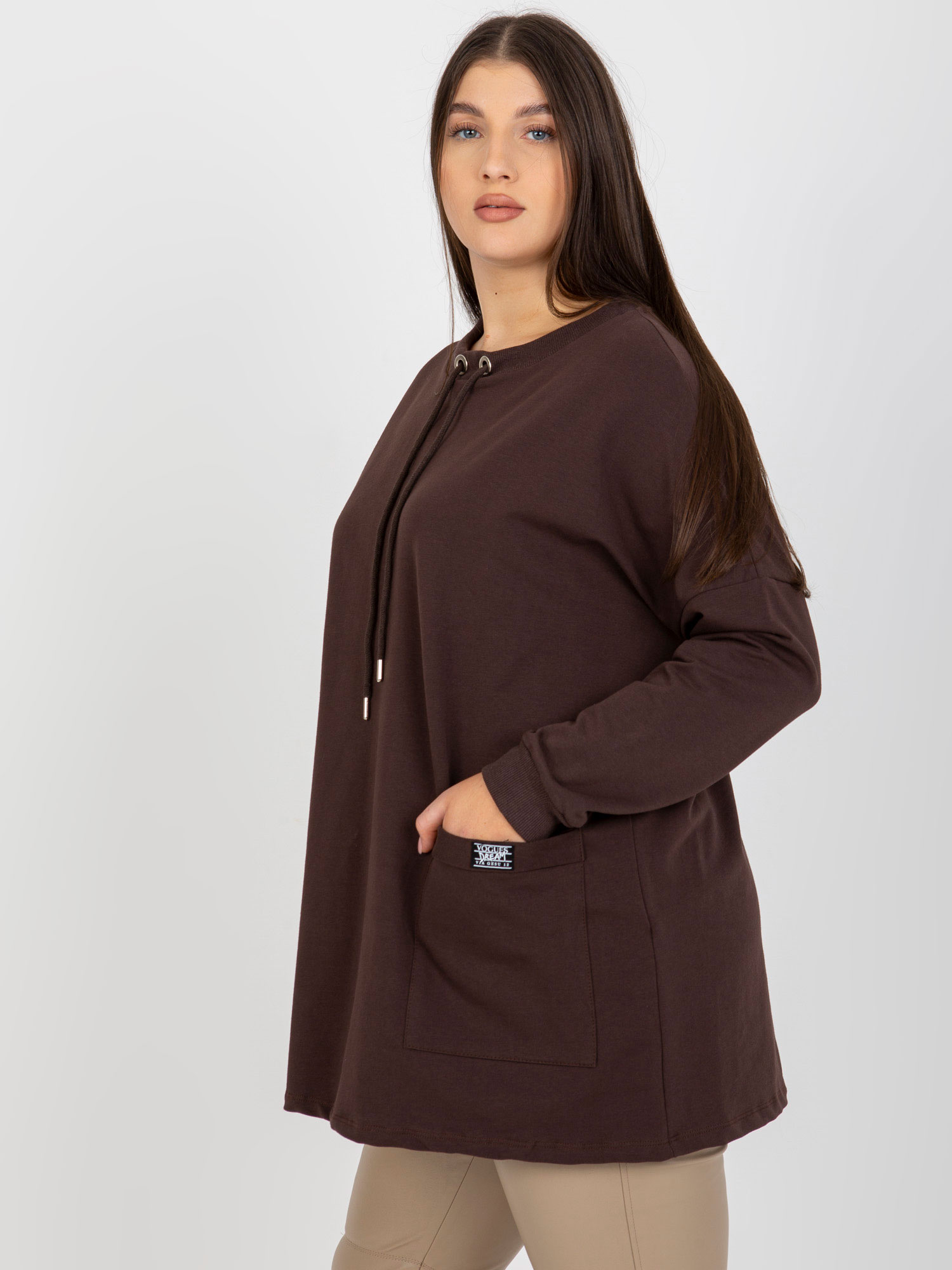 Ciemnobrązowa bluza plus size basic z troczkami .