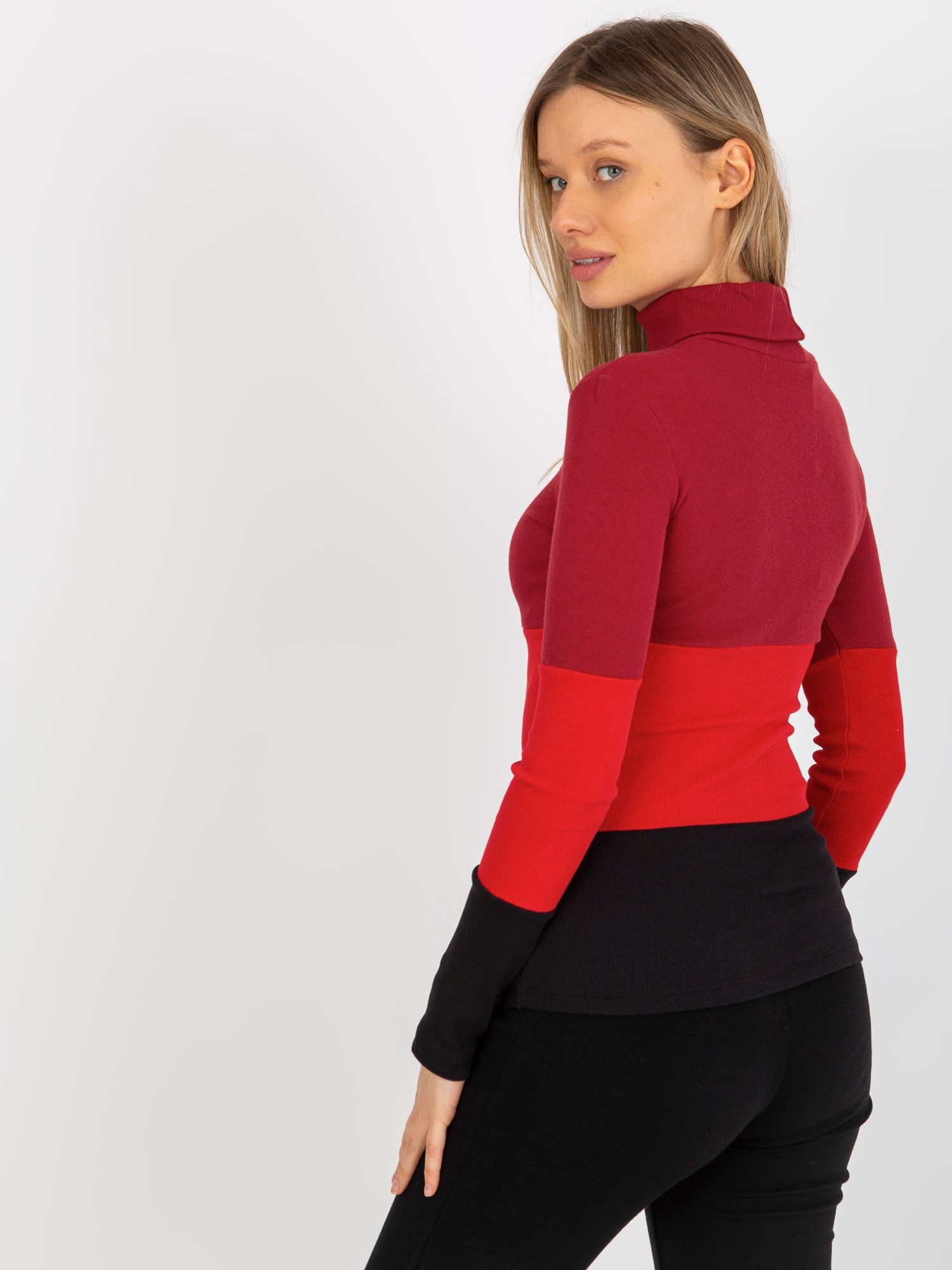 Jasnobordowo-czarna prążkowana bluzka basic z golfem .