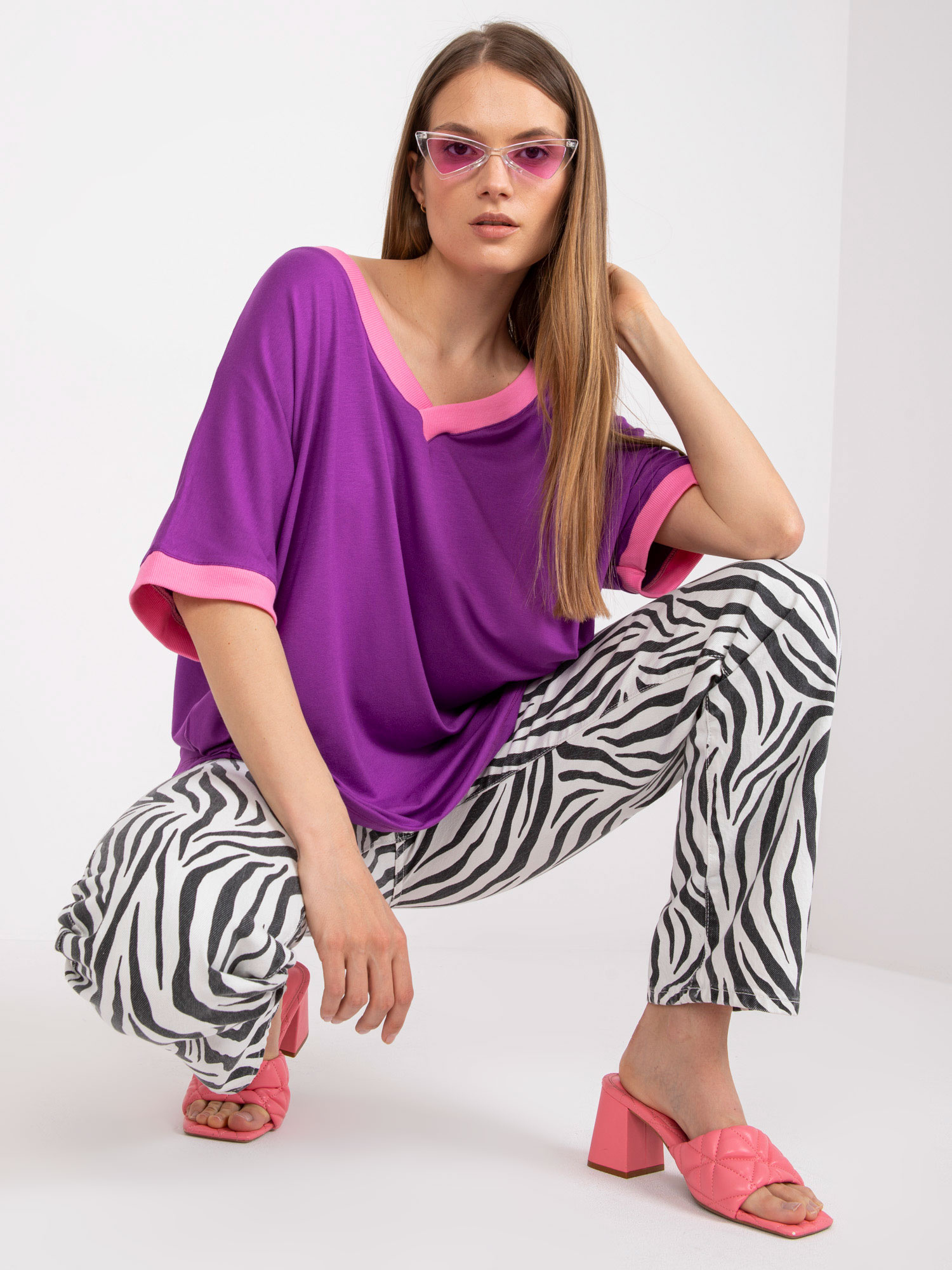 Wymiary bluzki w rozmiarze one size mierzone na płasko: szerokość pod pachami – 70 cm, długość całkowita – 67 cm.