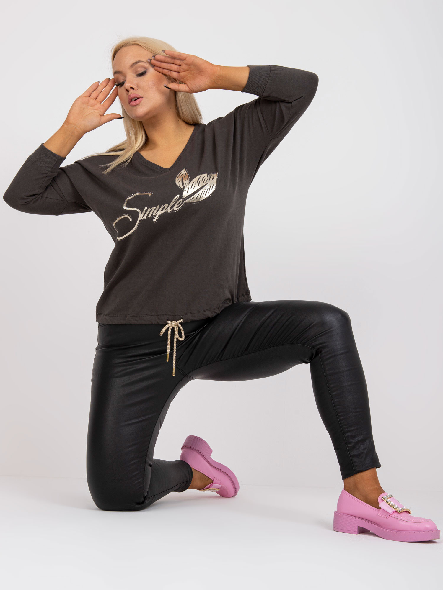 Wymiary bluzki w rozmiarze one size mierzone na płasko: szerokość pod pachami – 63 cm, długość całkowita – 61 cm, długość rękawa – 46 cm.
