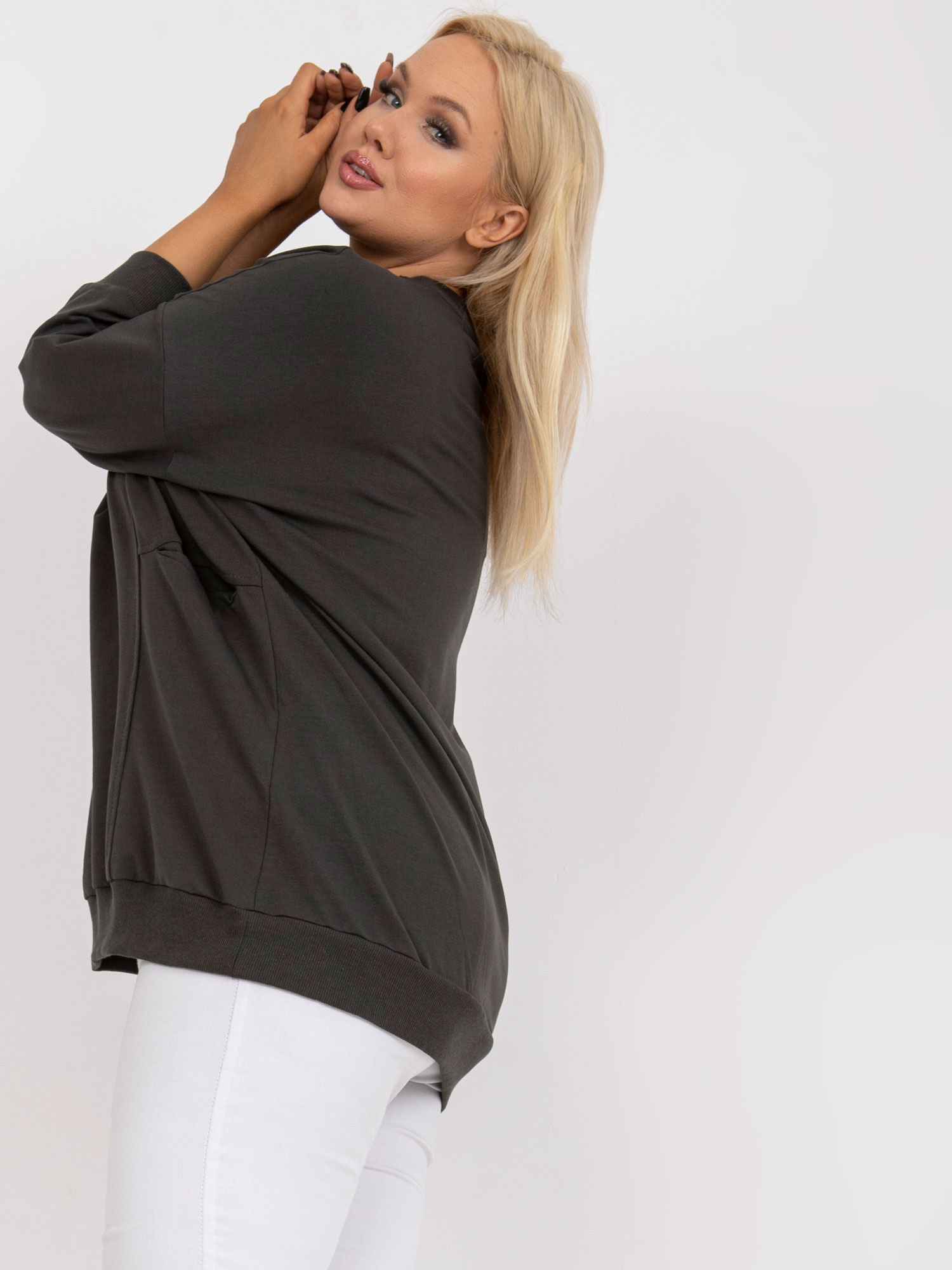 Wymiary bluzki w rozmiarze one size mierzone na płasko: szerokość pod pachami – 70 cm, długość rękawa – 45 cm, długość całkowita – 72 cm.