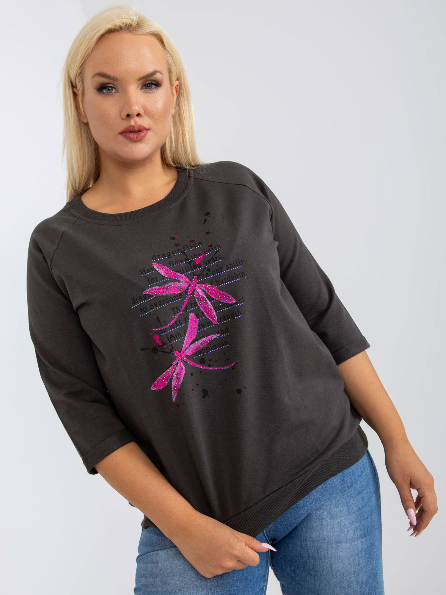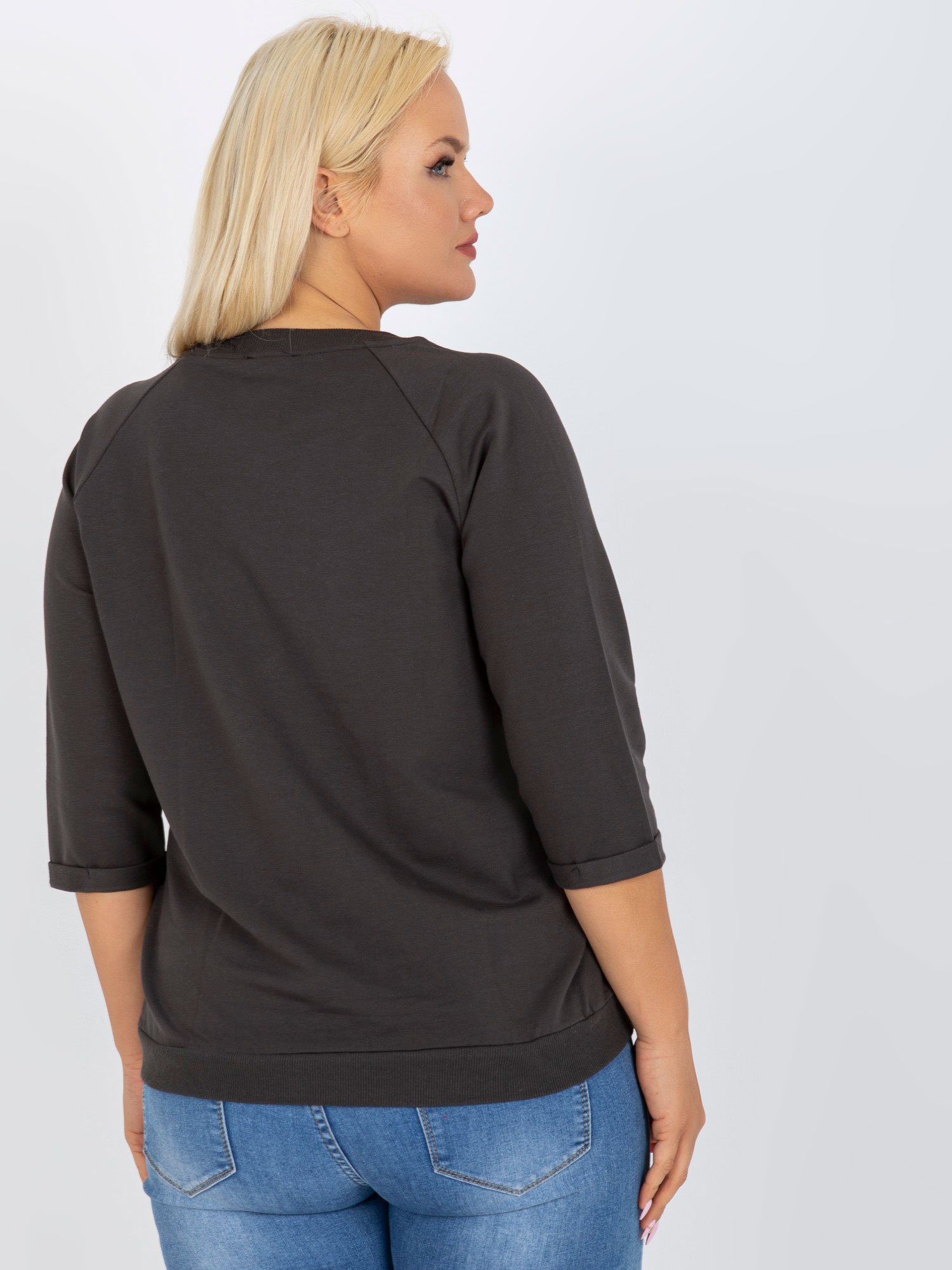 Khaki damska bluzka plus size z rękawem 3/4 .