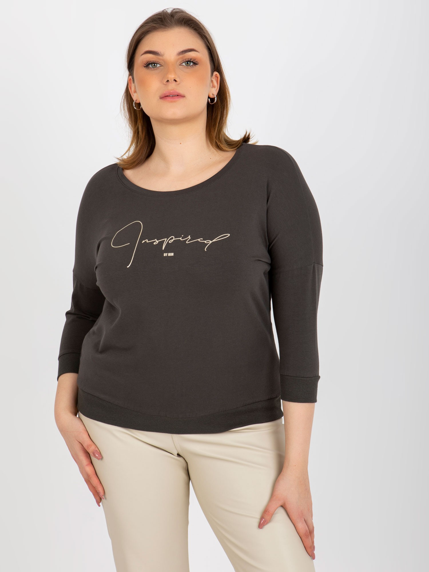 Khaki bawełniana bluzka plus size z rękawem 3/4 .