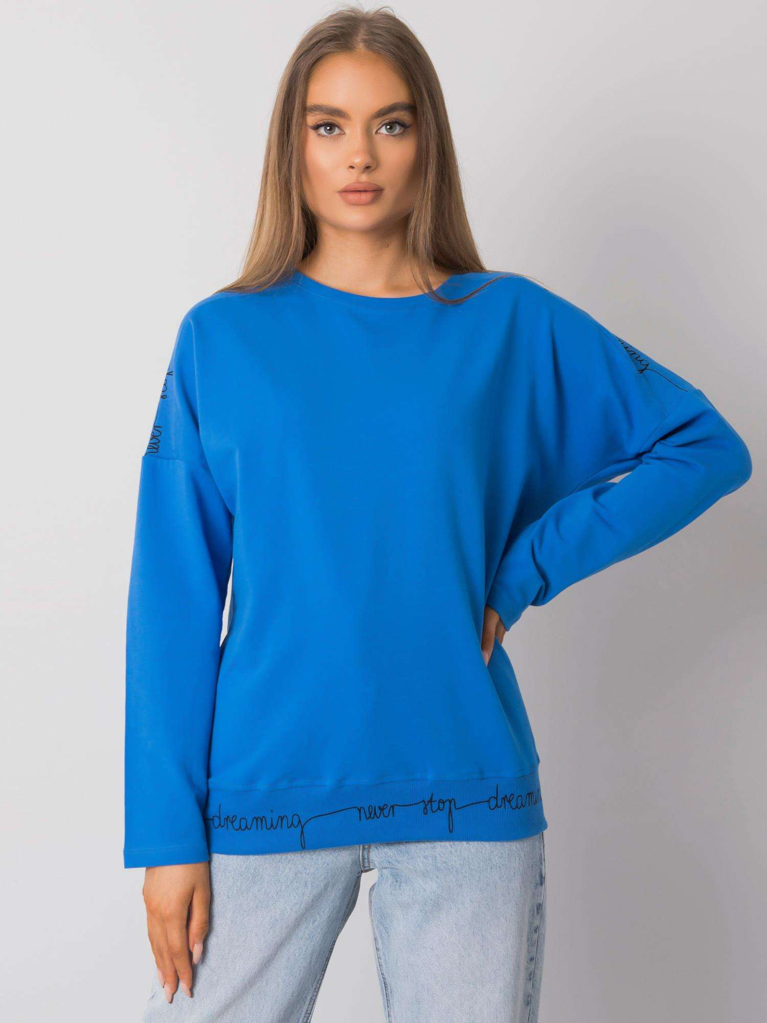 Ciemnoniebieska damska bluzka z długim rękawem.