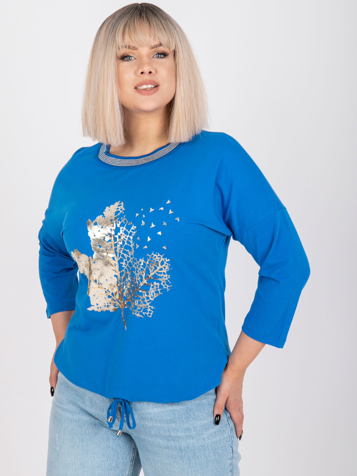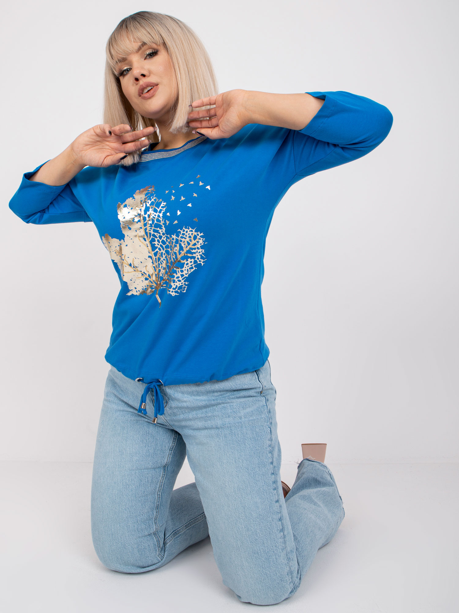 Wymiary bluzki w rozmiarze one size mierzone na płasko: szerokość pod pachami – 58 cm, długość całkowita – 60 cm, długość rękawa – 44 cm.