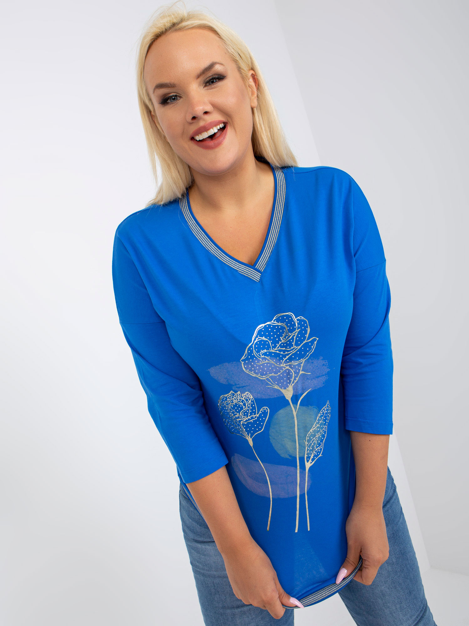 Ciemnoniebieska bluzka plus size z aplikacją .