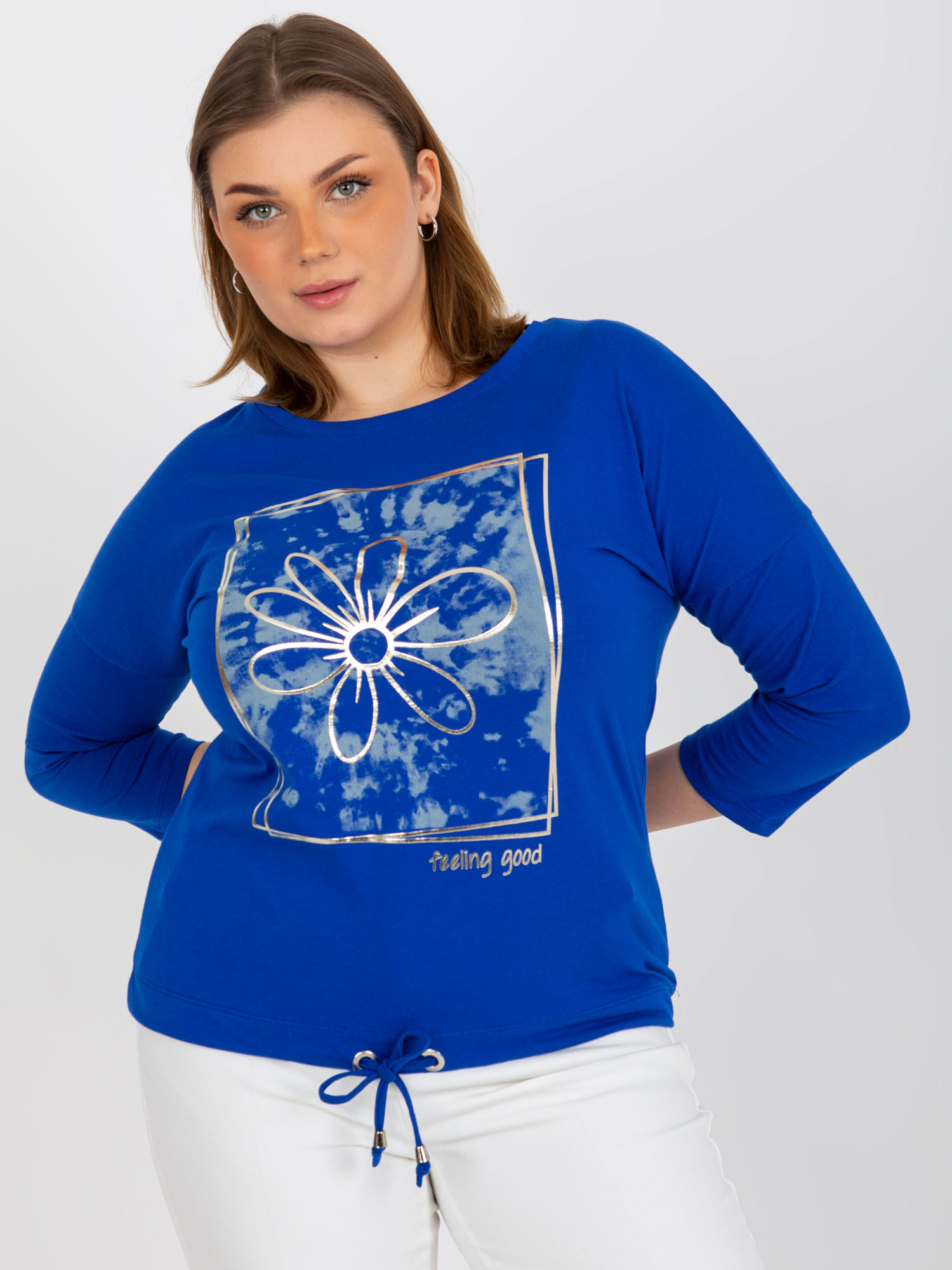 Ciemnoniebieska bluzka plus size z nadrukiem .