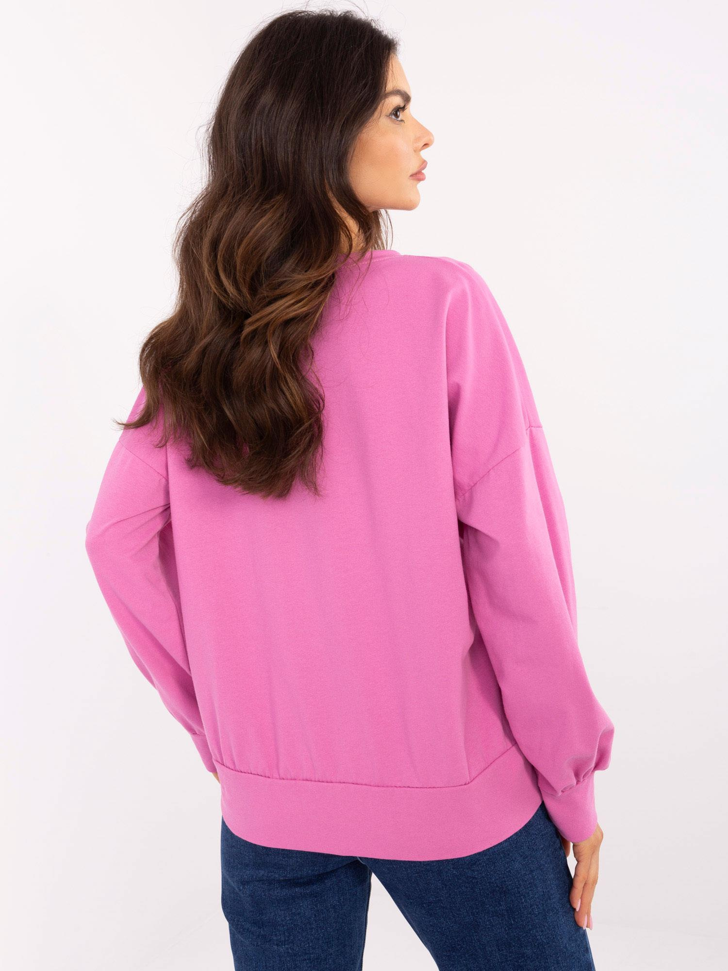 Wymiary bluzy w rozmiarze one size mierzone na płasko: szerokość pod pachami – 64 cm, długość rękawa – 44 cm (od szwu), długość całkowita – 61 cm, szerokość w biodrach – 54 cm.