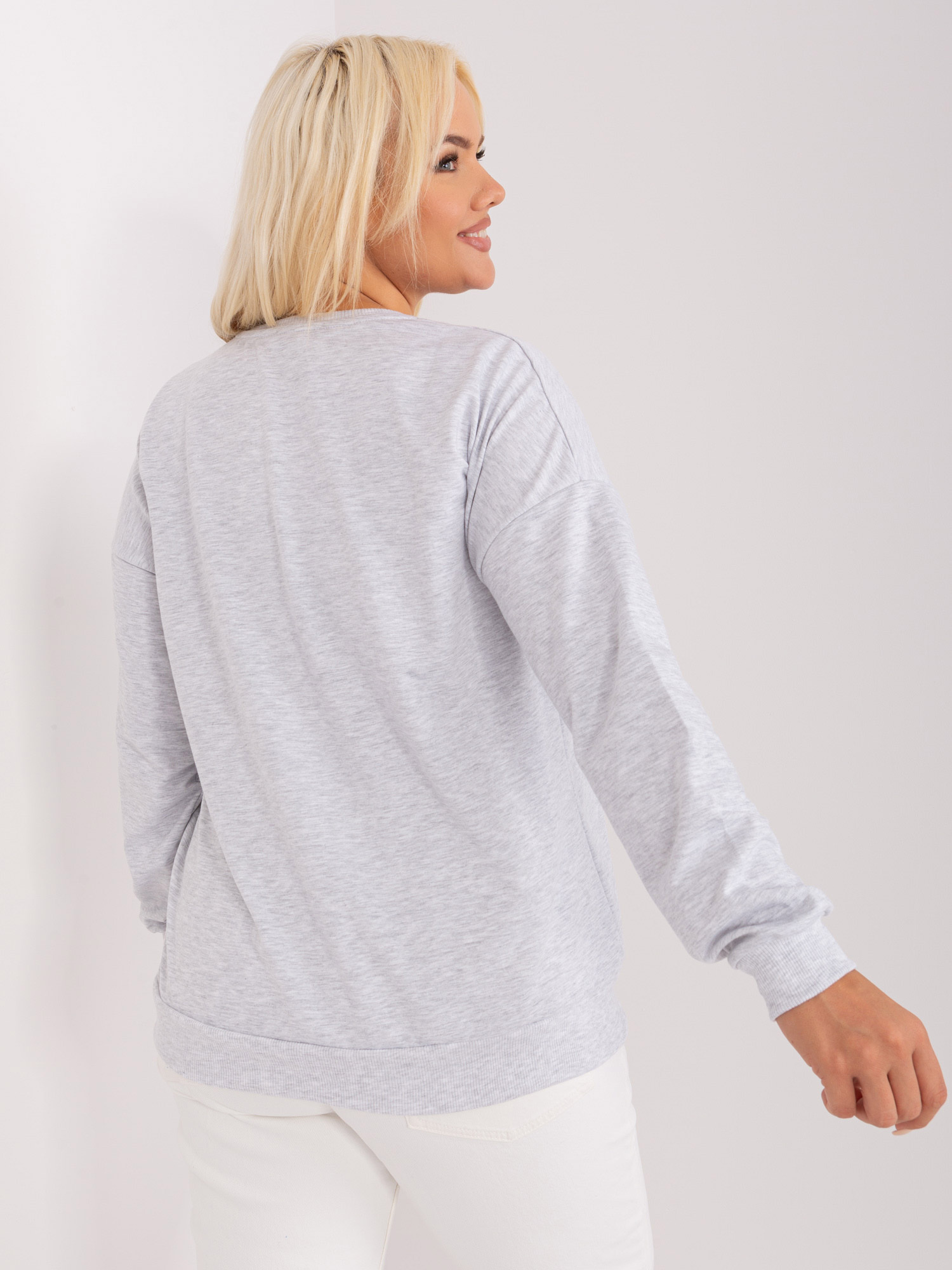 Wymiary bluzki w rozmiarze one size mierzone na płasko: szerokość pod pachami – 74 cm, długość rękawa – 45 cm, długość całkowita – 73 cm .