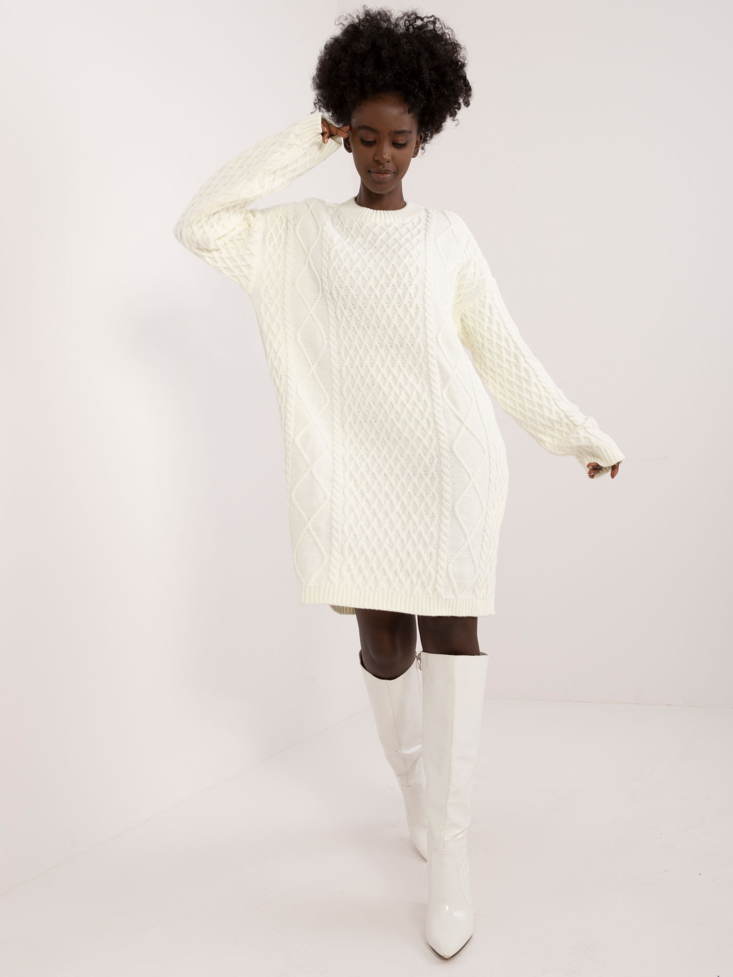 Modelka ma na sobie rozmiar S/M. Wymiary modelki: wzrost 170 cm, biust 88 cm, talia 63 cm, biodra 89 cm.