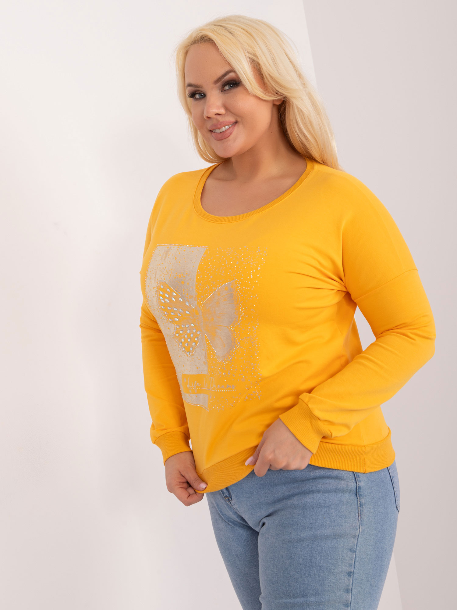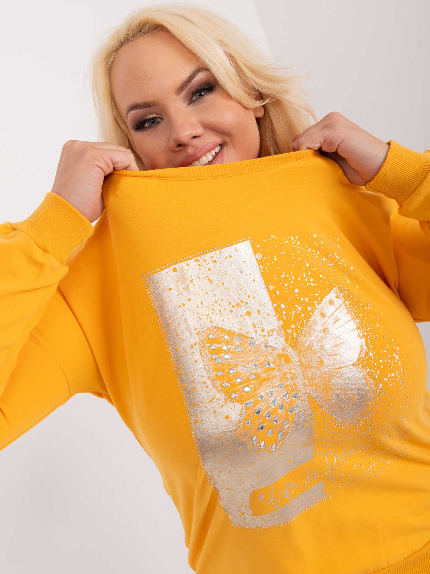Wymiary bluzki w rozmiarze one size mierzone na płasko: szerokość pod pachami – 62 cm, długość rękawa – 56 cm, długość całkowita – 59 cm .