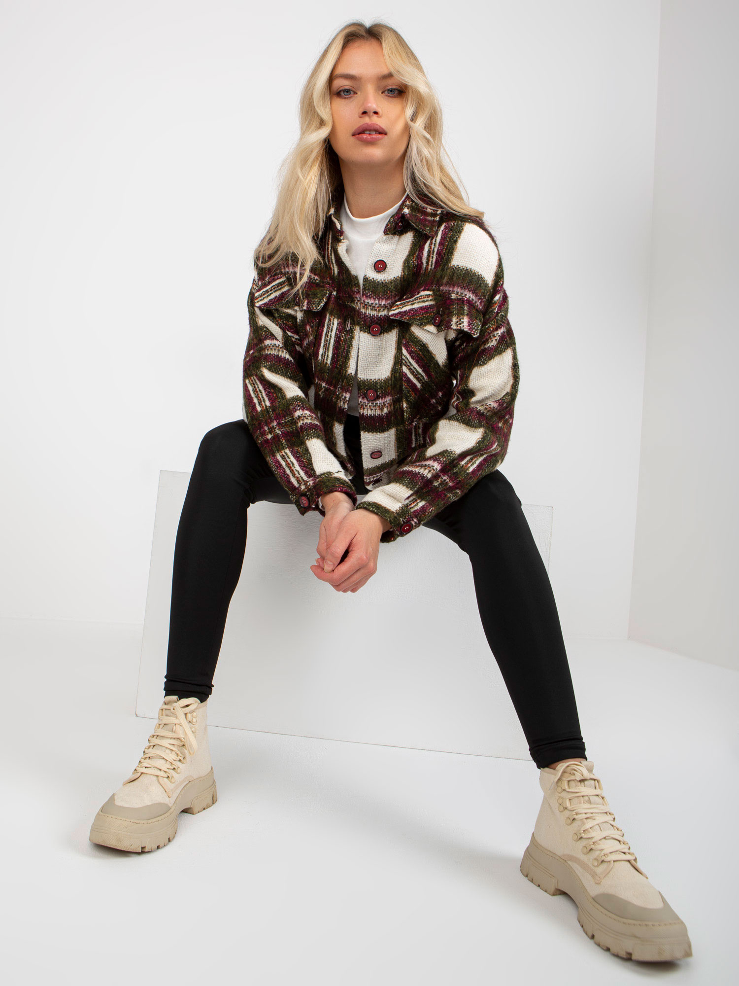 Modelka ma na sobie rozmiar one size. Wymiary modelki: wzrost 175 cm, biust 90 cm, talia 66 cm, biodra 94 cm.