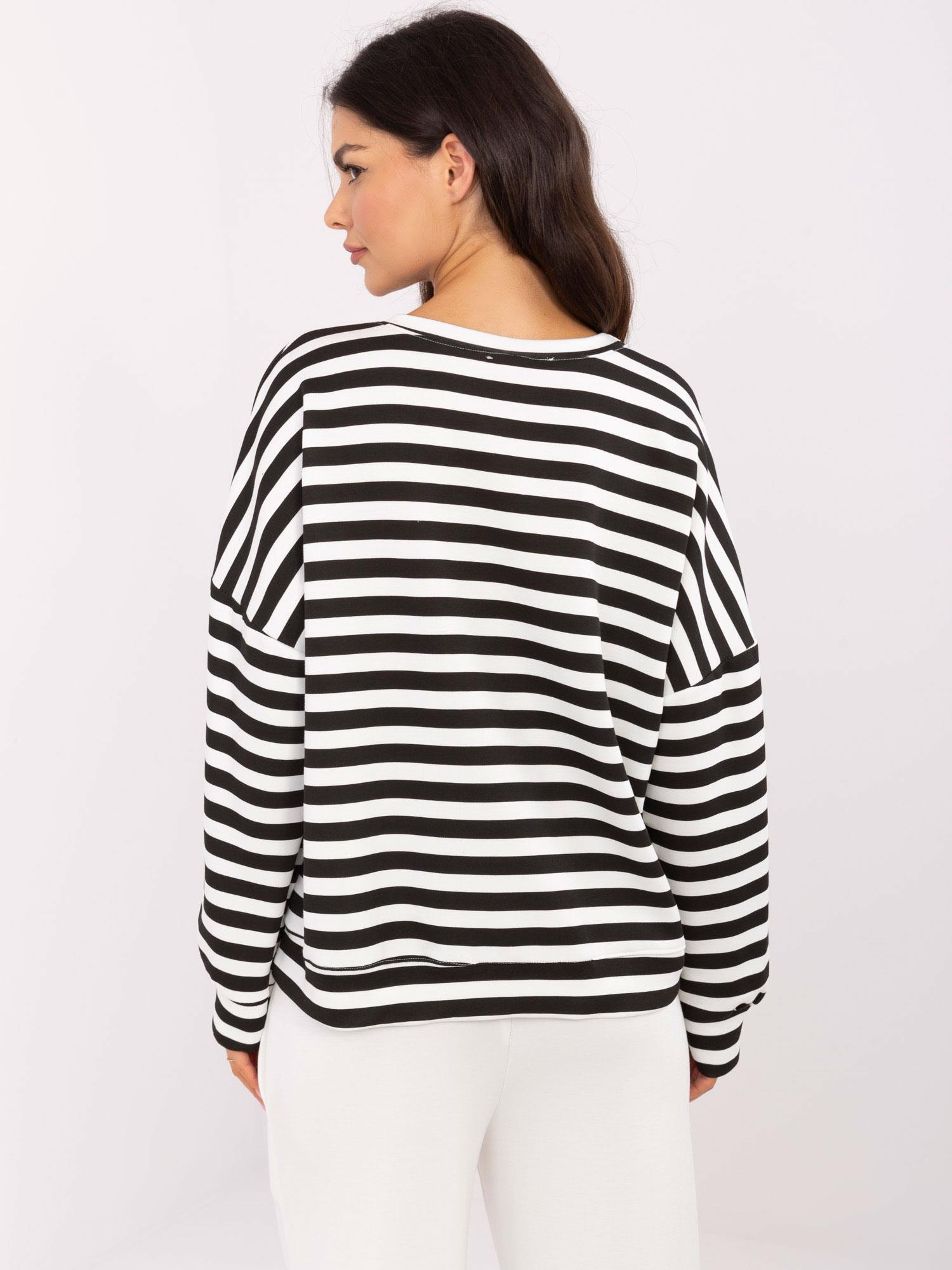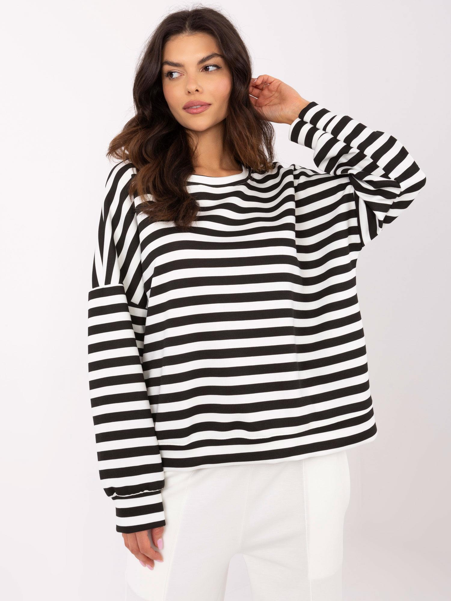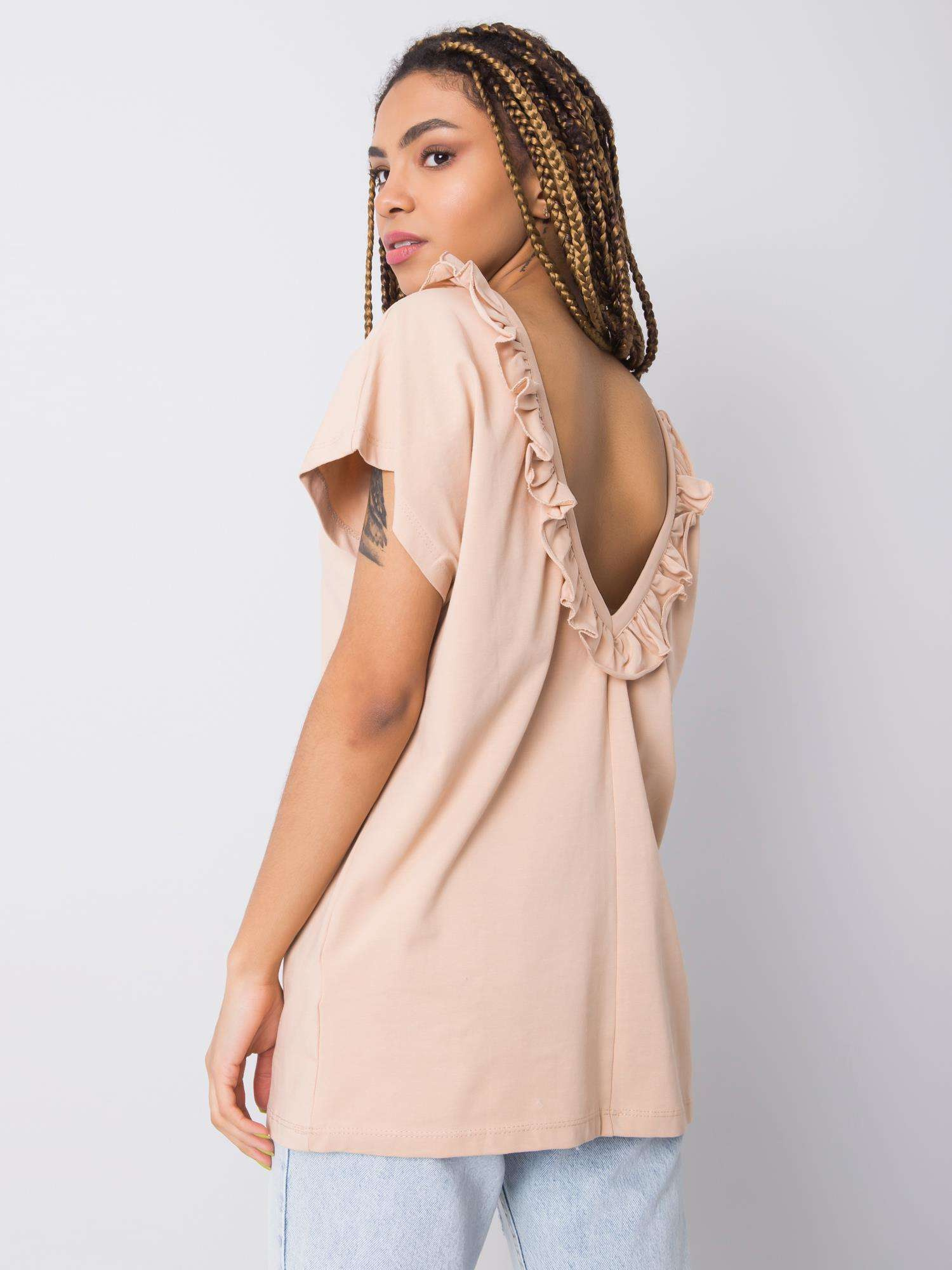 Wymiary bluzki w rozmiarze one size mierzone na płasko: szerokość pod pachami – 68 cm, długość rękawa – 43 cm (od szwu), długość całkowita – 63 cm, szerokość w biodrach – 59 cm.