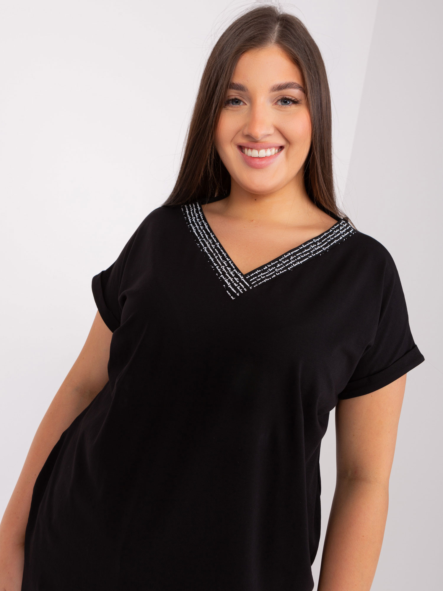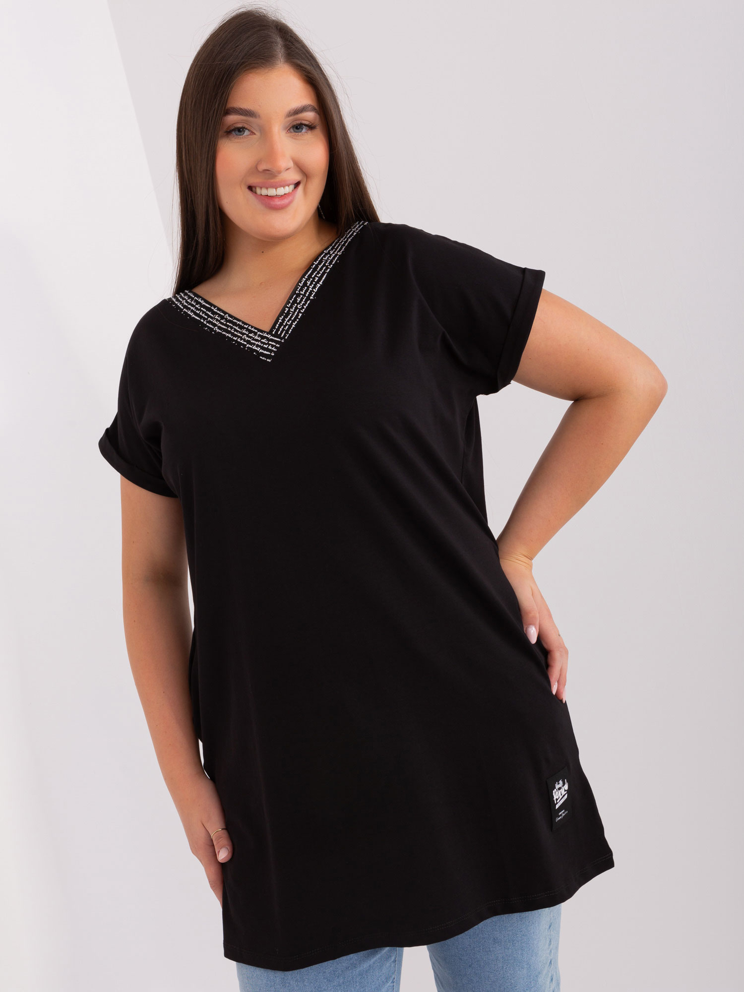 Wymiary bluzki w rozmiarze one size mierzone na płasko: szerokość bluzki pod pachami – 61 cm, długość całkowita – 86 cm.