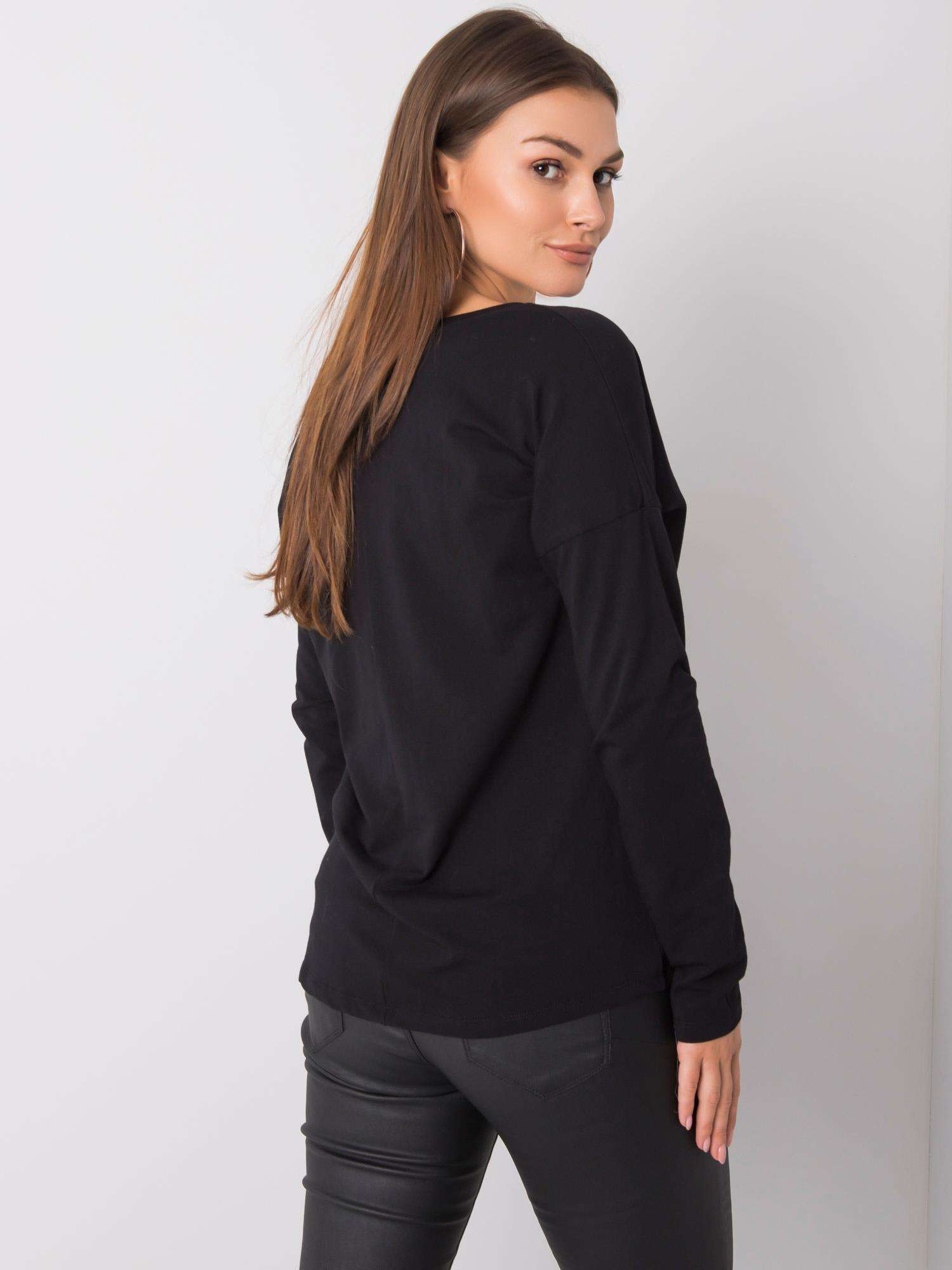 Czarna bawełniana bluzka z długim rękawem.