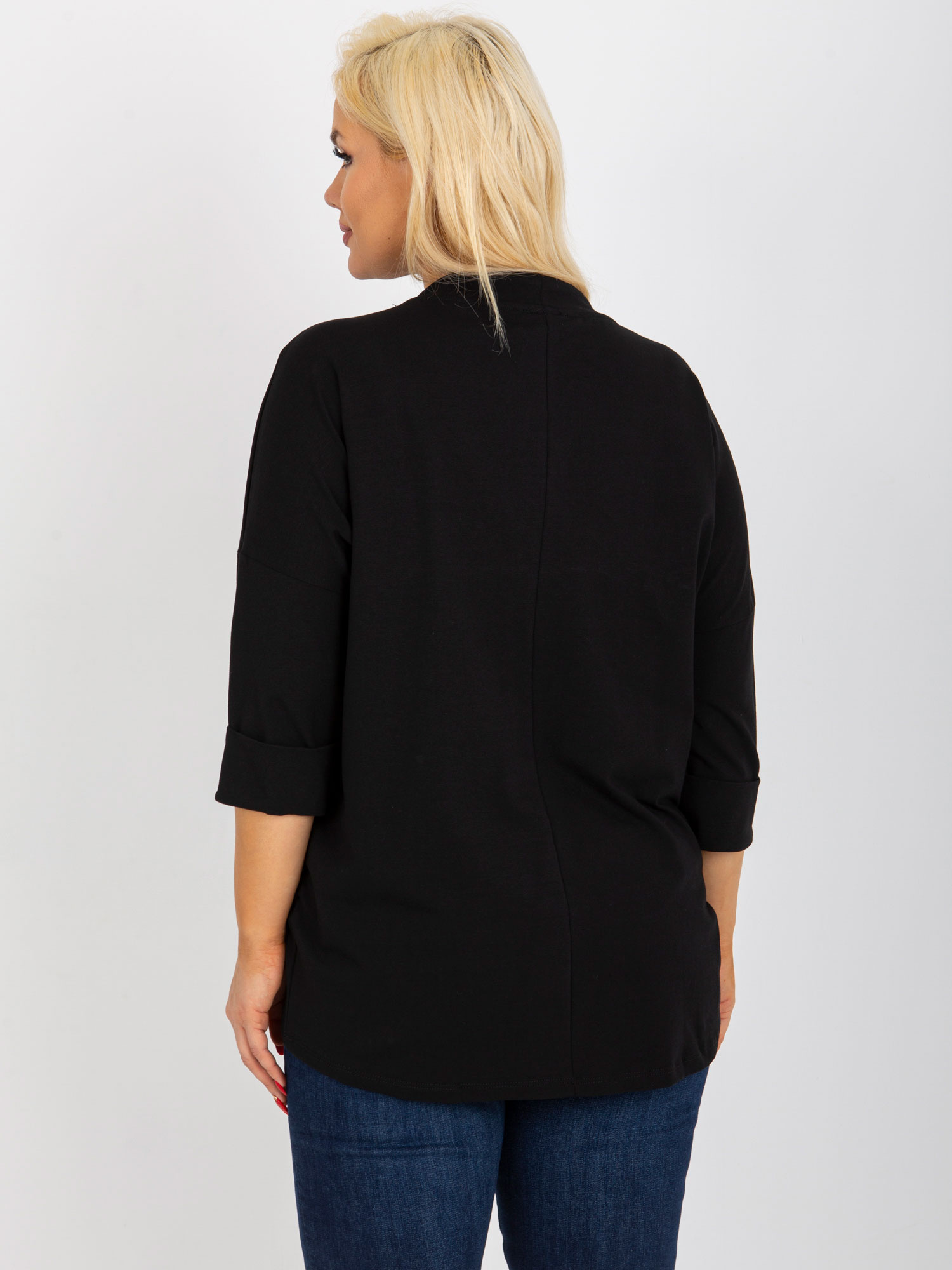 Czarna bluzka plus size z perełkami i rękawem 3/4 .