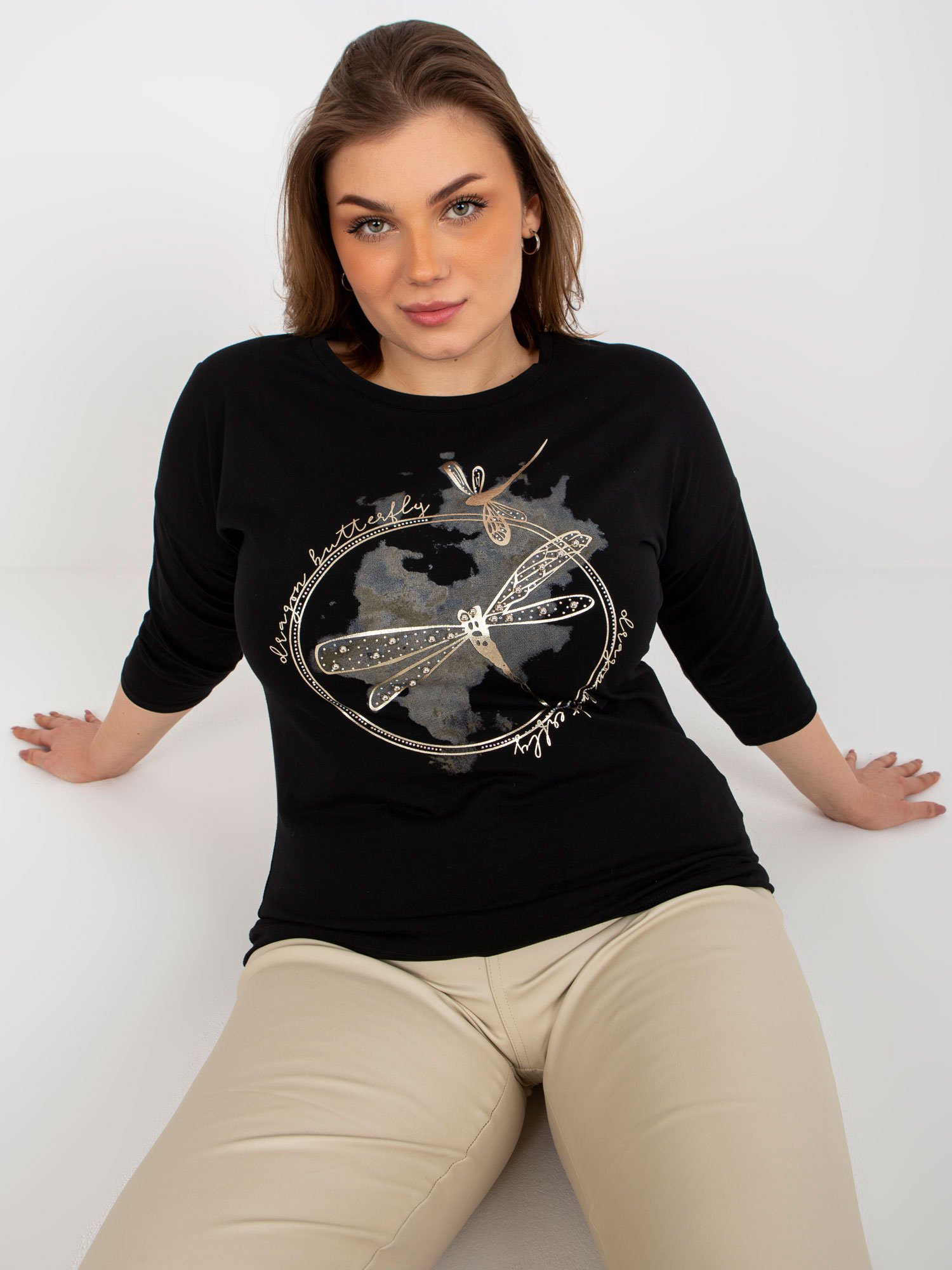 Czarna codzienna bluzka plus size z nadrukiem .