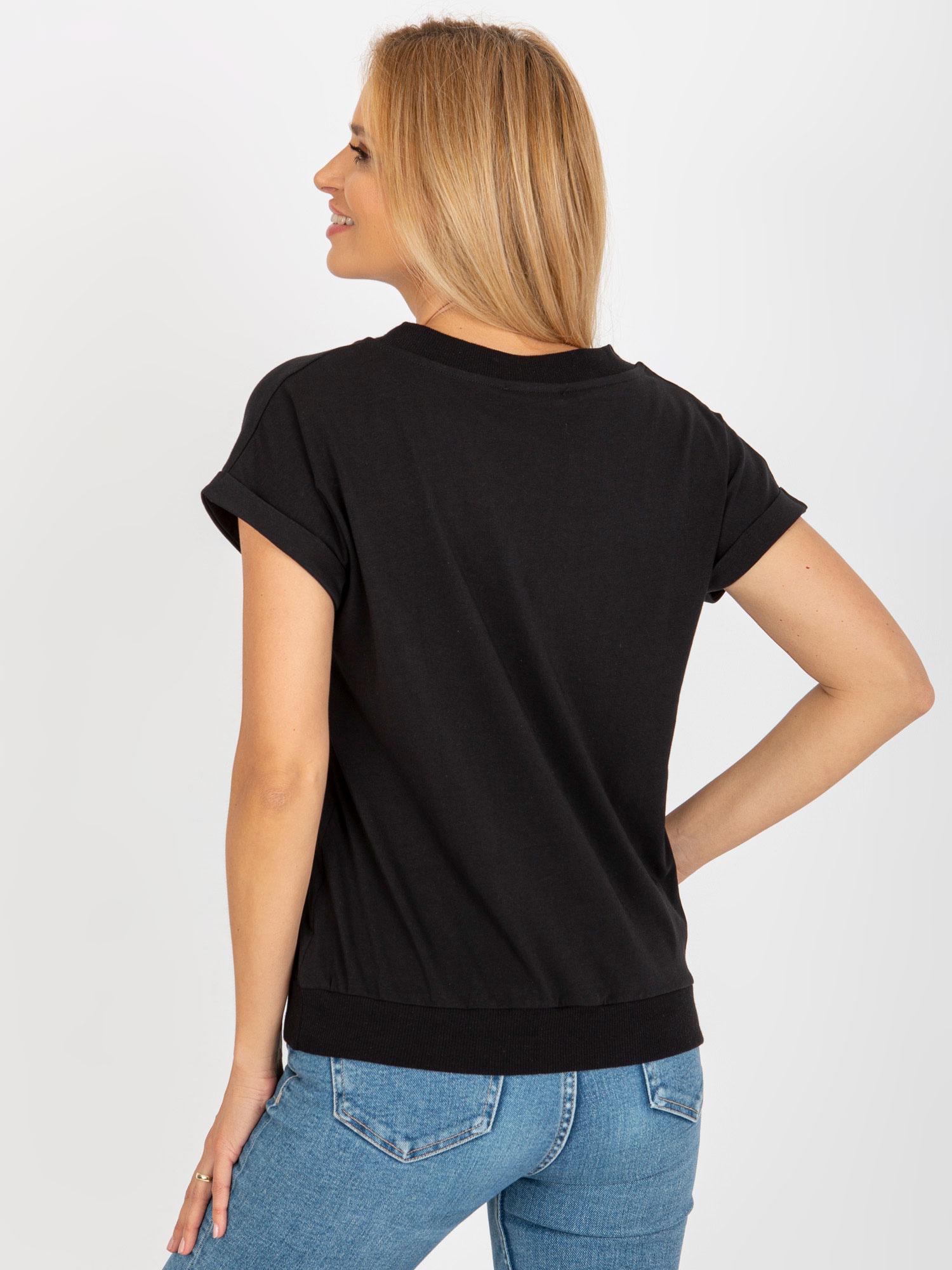 Czarna bluzka z nadrukiem i dekoltem V RUE PARIS .