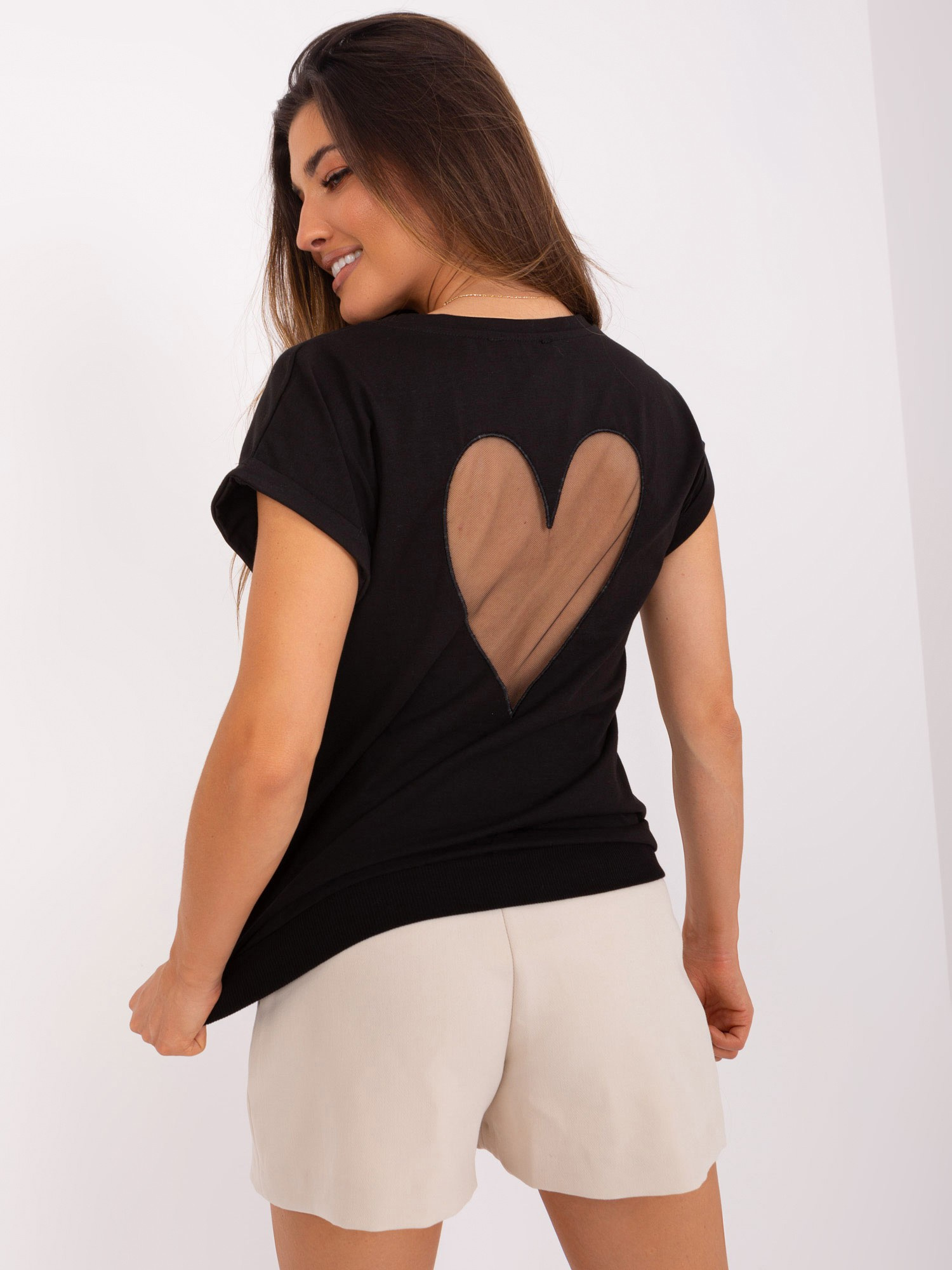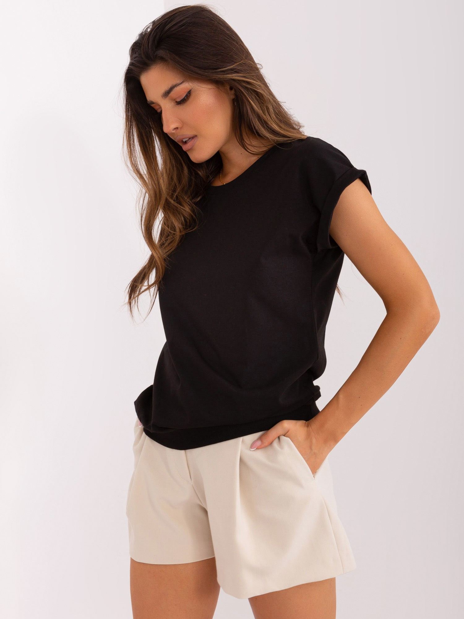 Czarna bawełniana bluzka damska z okrągłym dekoltem.