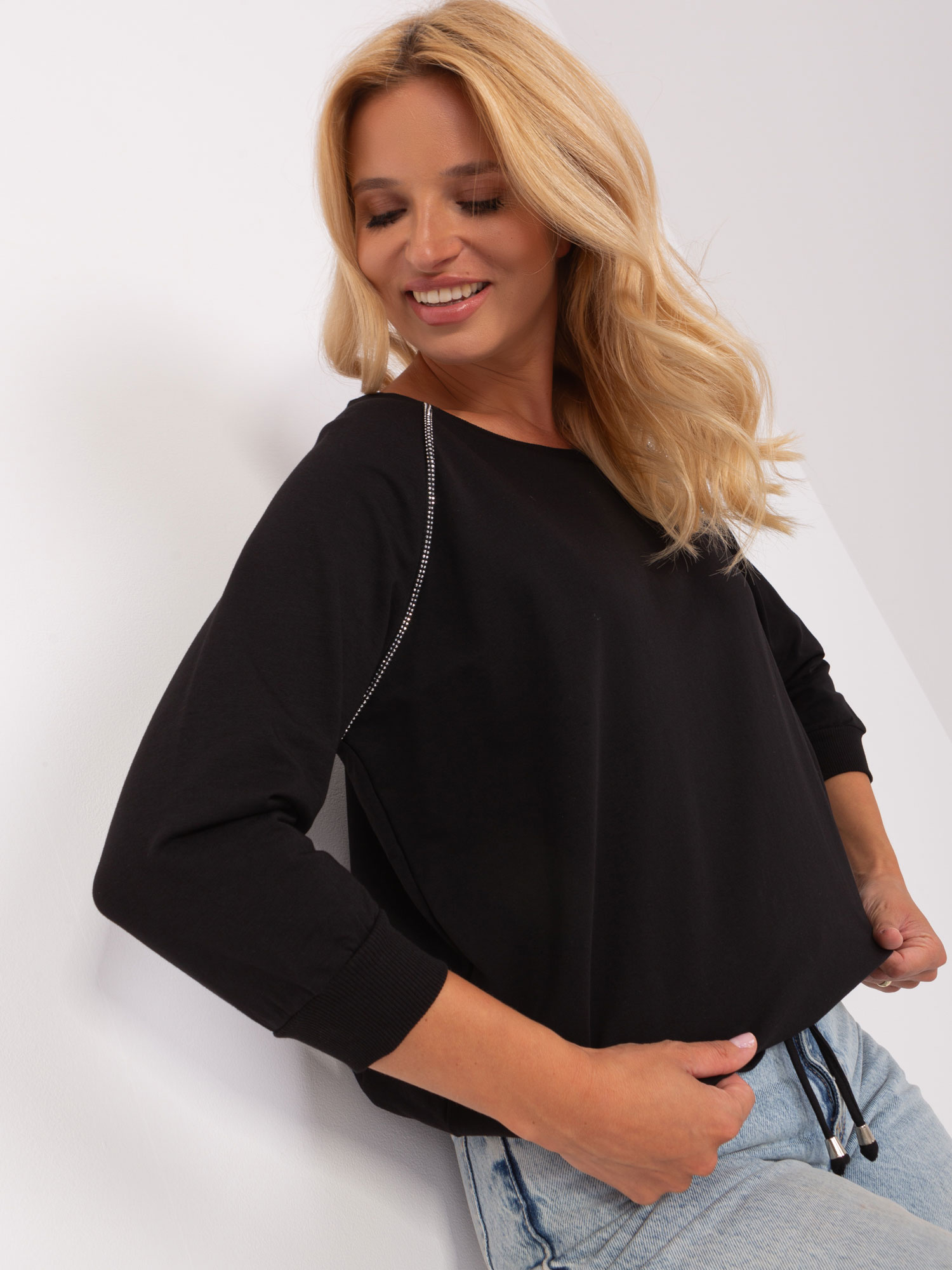 Czarna damska bluzka na co dzień ze ściągaczem .