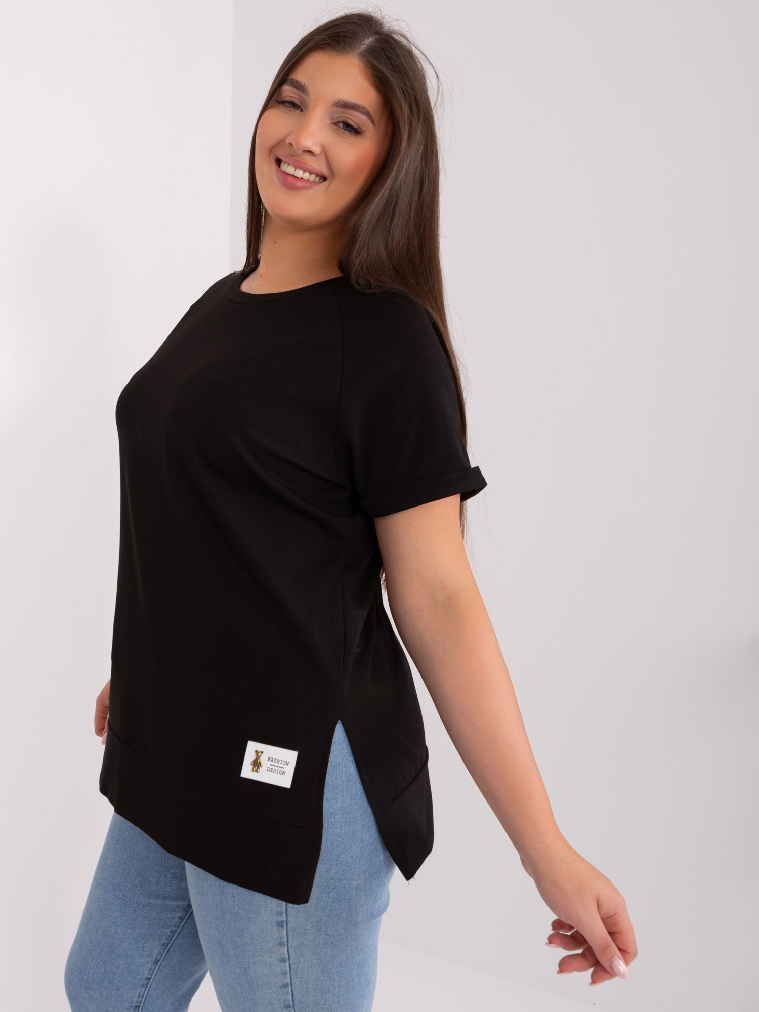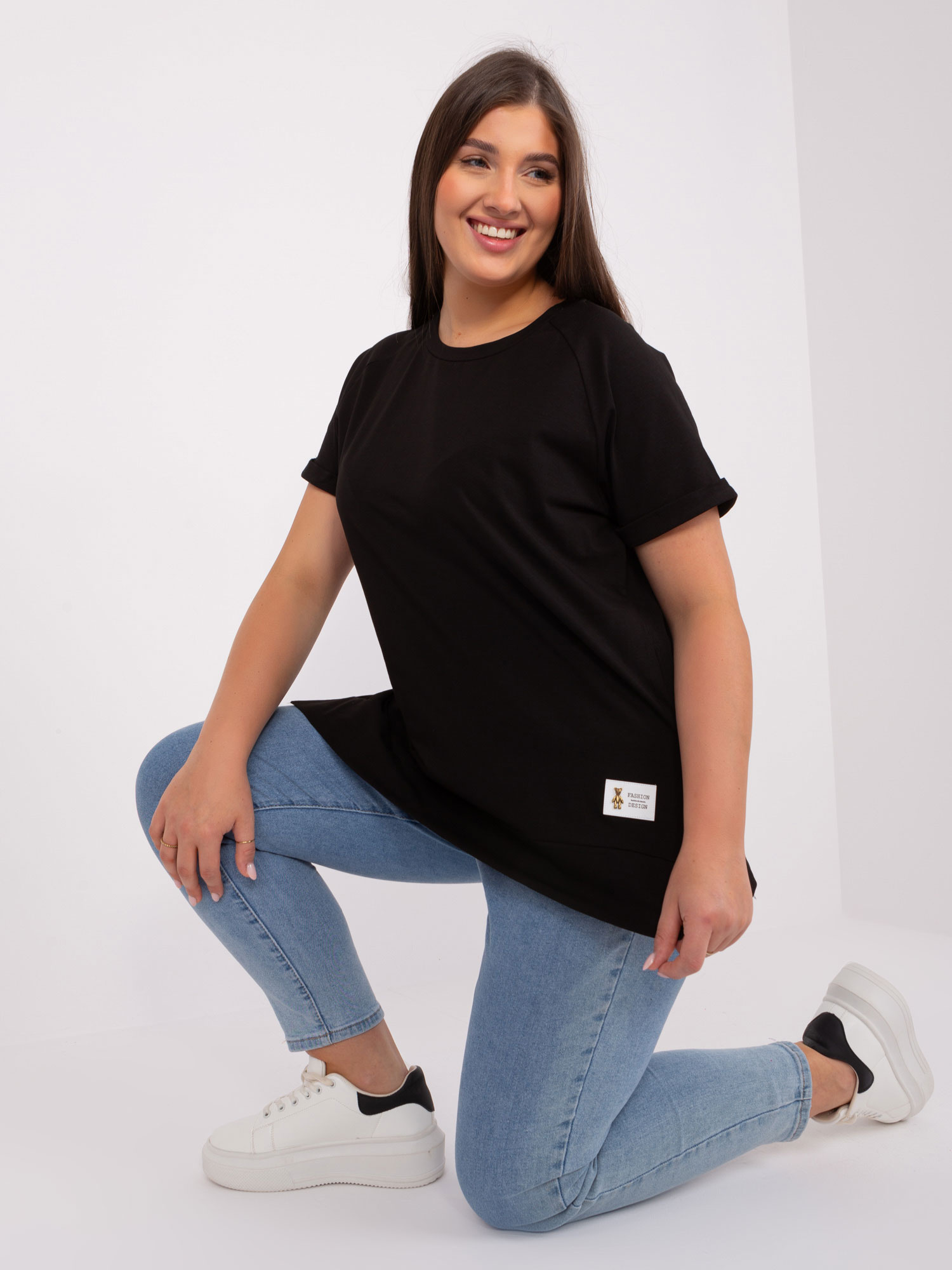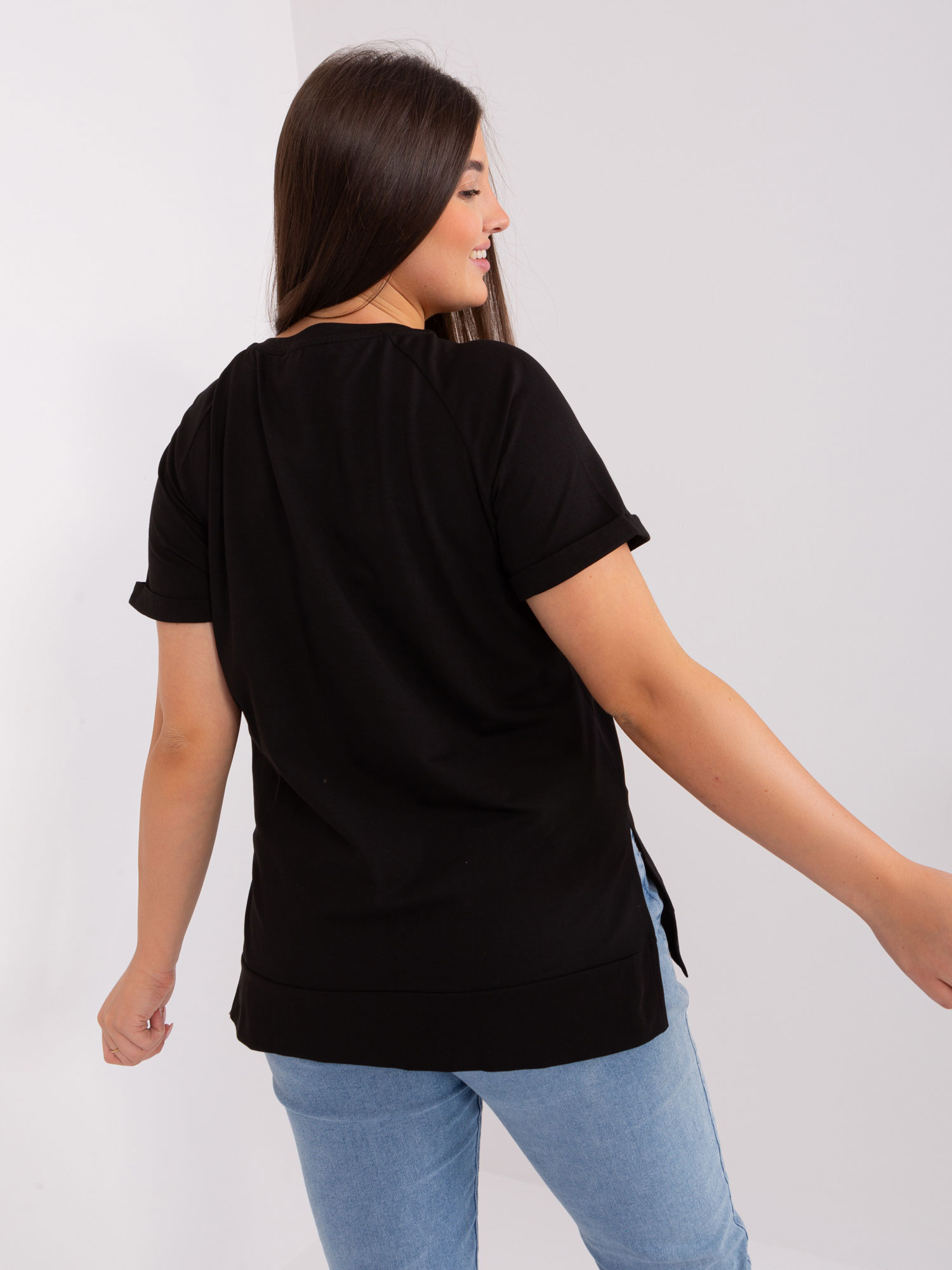 Wymiary bluzki w rozmiarze one size mierzone na płasko: szerokość bluzki pod pachami – 54 cm, długość całkowita – 68 cm.