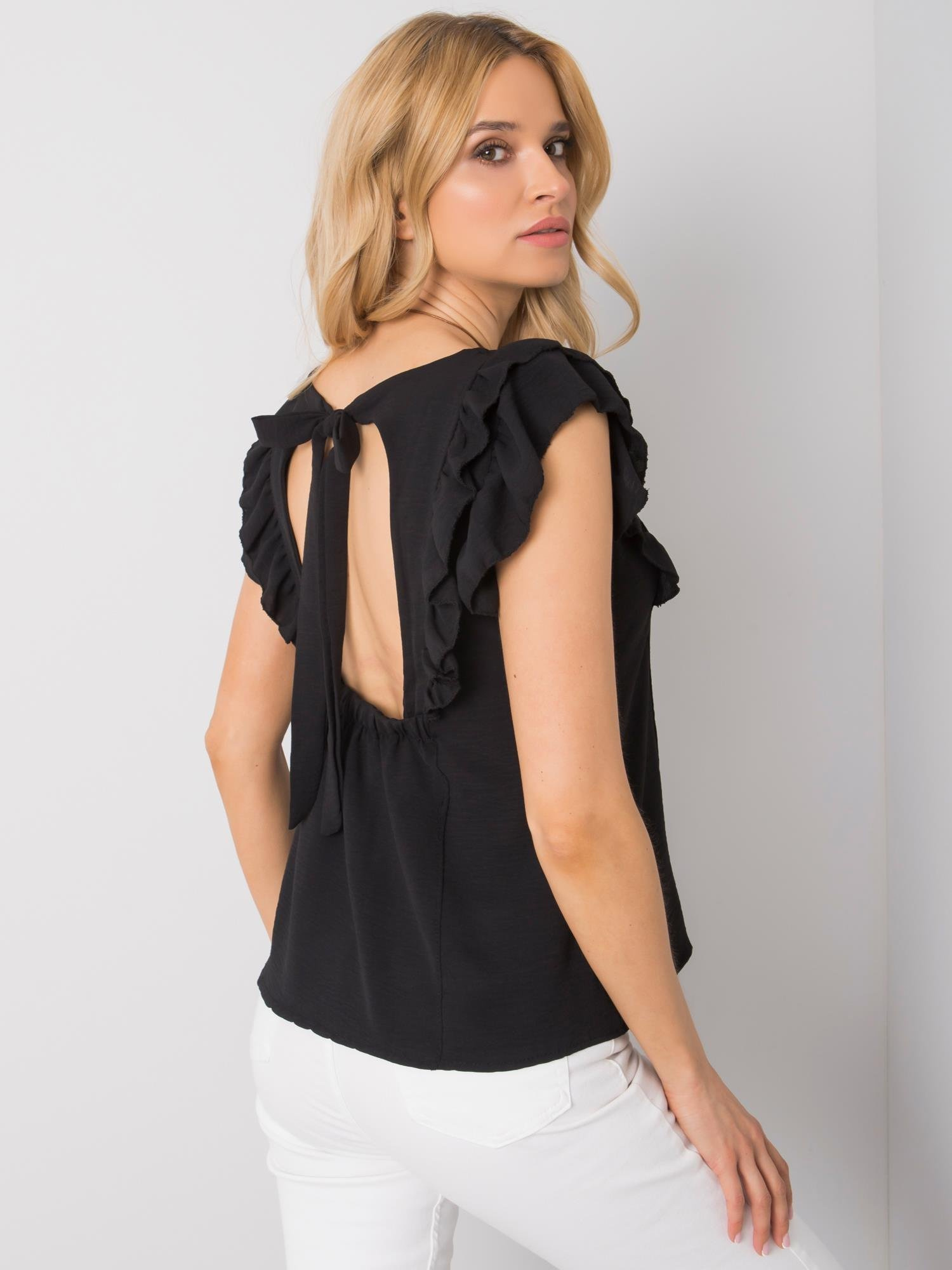 OCH BELLA Czarna bluzka z dekoltem na plecach.