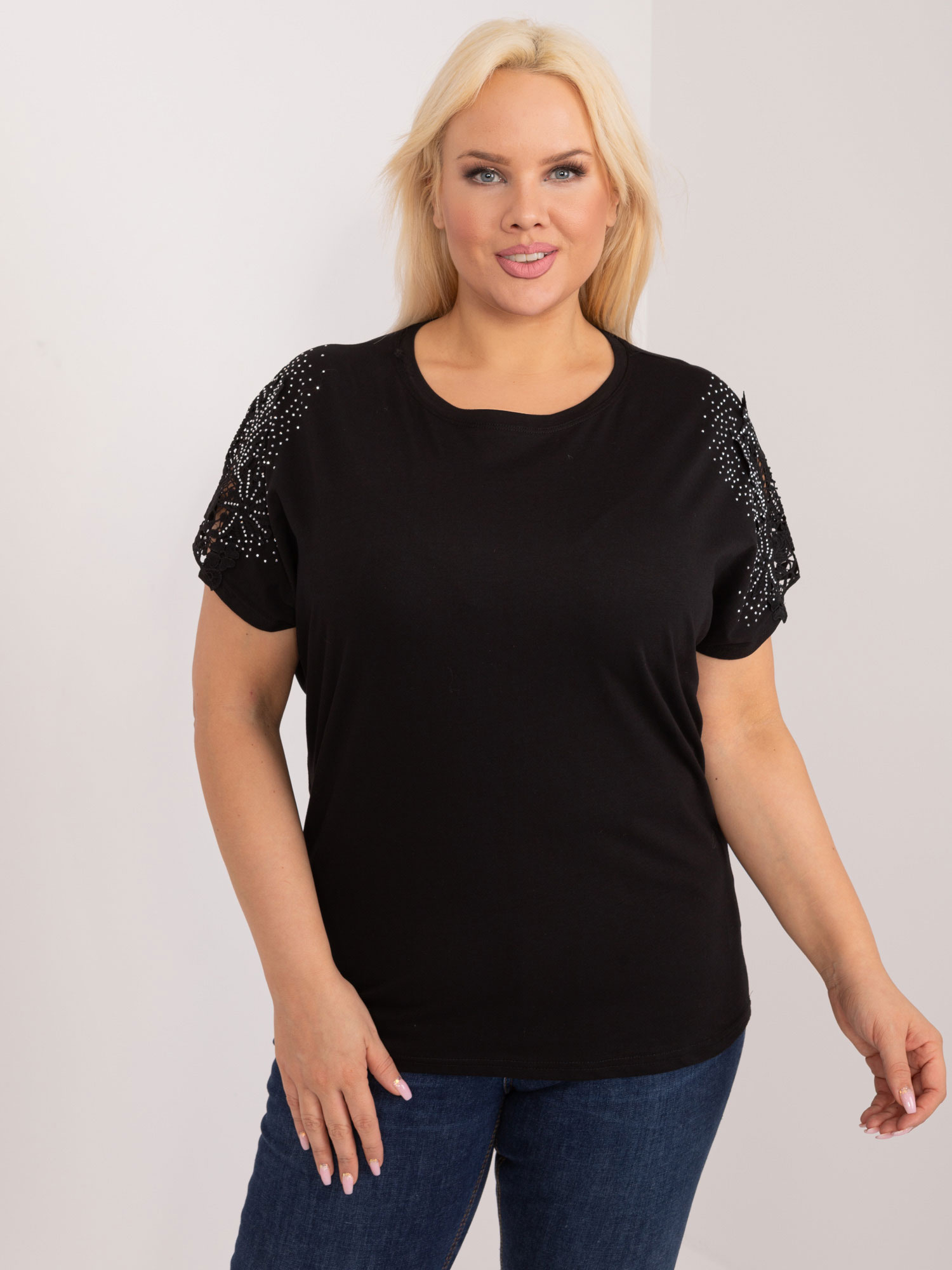 Wymiary bluzki w rozmiarze XL mierzone na płasko: szerokość pod pachami – 63 cm, długość całkowita – 65 cm.