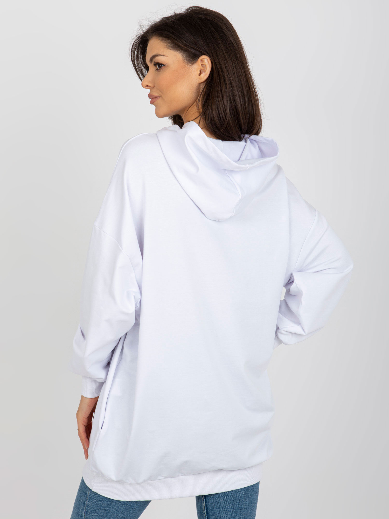 Wymiary bluzki w rozmiarze one size mierzone na płasko: szerokość pod pachami – 45 cm, długość rękawa – 59 cm, długość całkowita – 58 cm