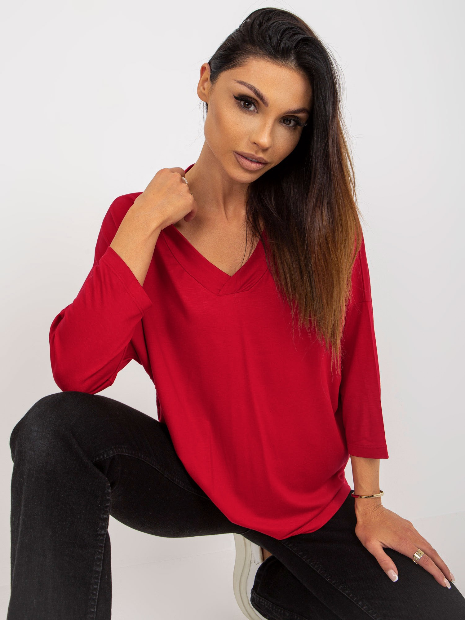 Czerwona damska bluzka basic z rękawem 3/4 .