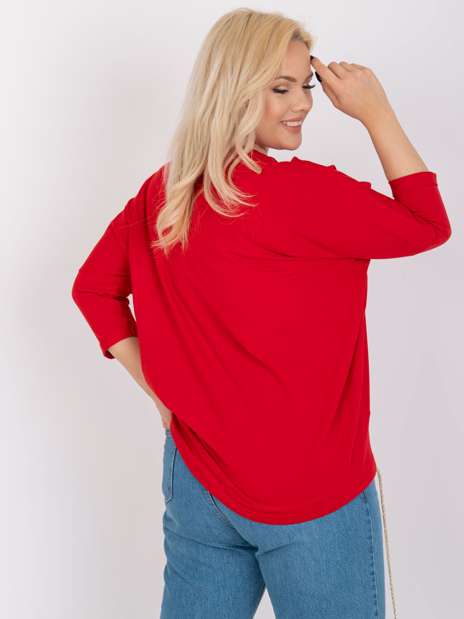 Wymiary bluzki w rozmiarze one size mierzone na płasko: szerokość pod pachami – 69 cm, długość całkowita – 67 cm, długość rękawa – 42 cm.