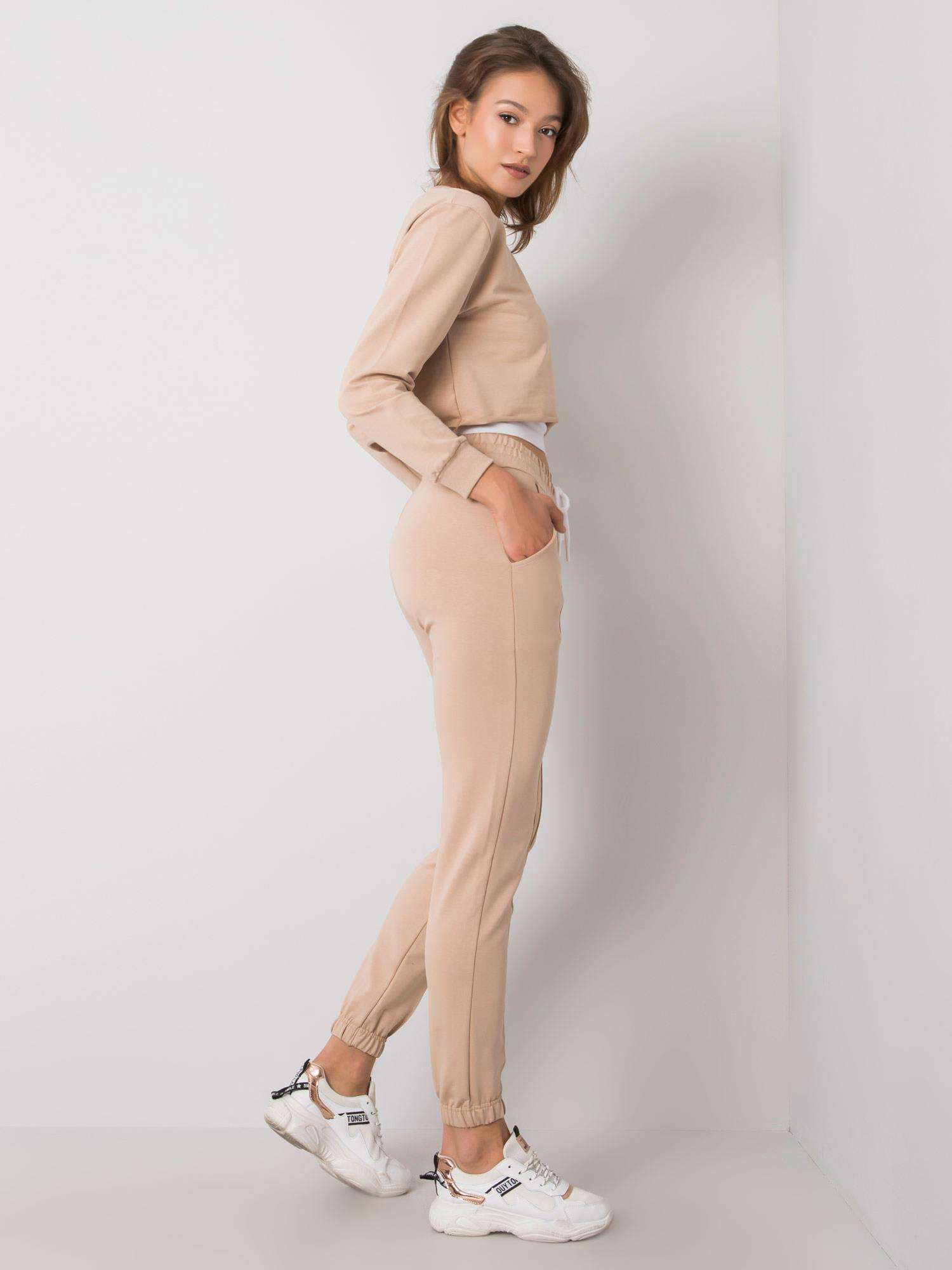 Ecru-khaki bawełniana bluzka basic z golfem w prążek .