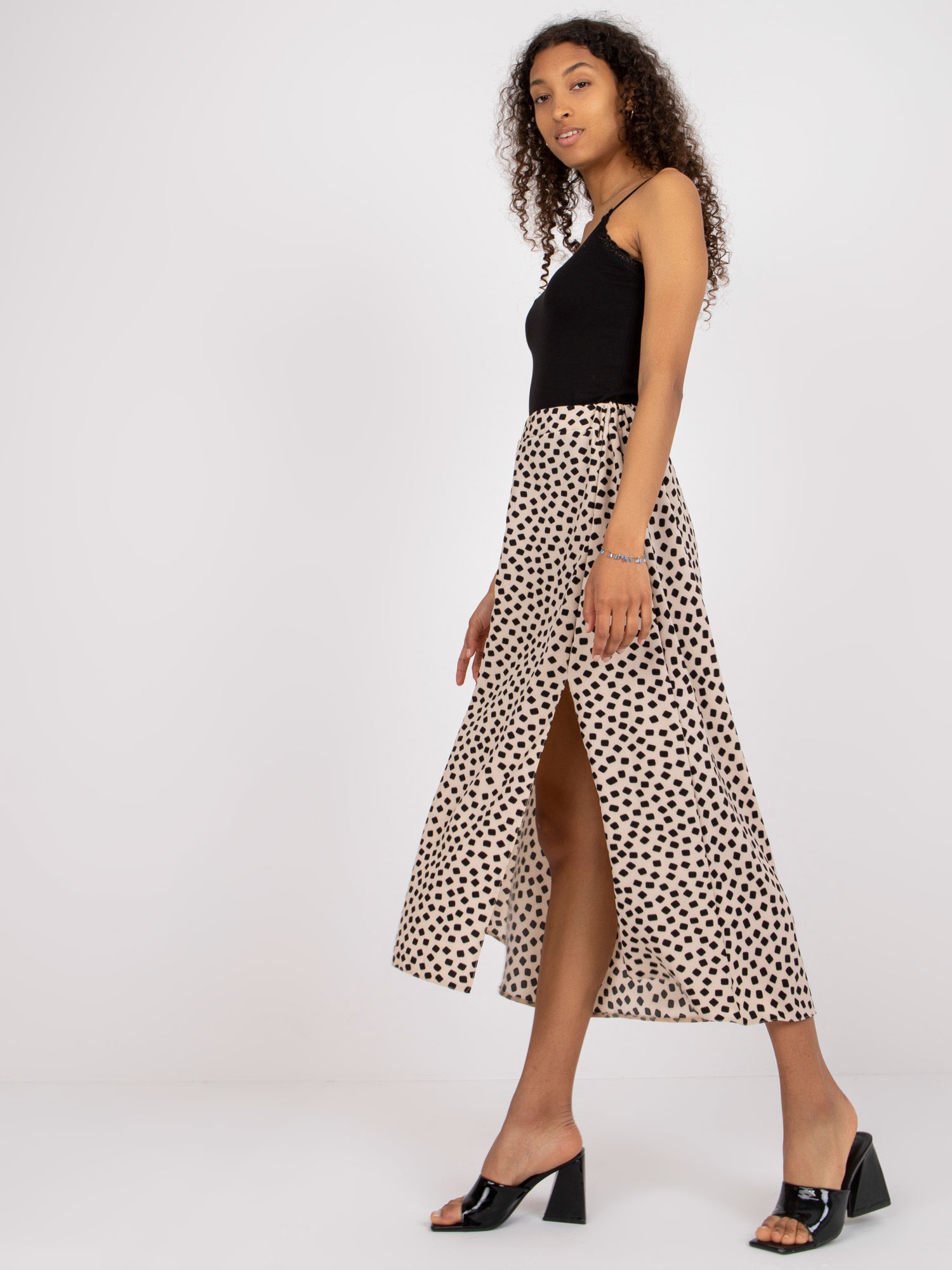 - Modelka: Modelka ma na sobie rozmiar one size. Wymiary modelki: wzrost 174 cm, biust 100 cm, talia 74 cm, biodra 107 cm