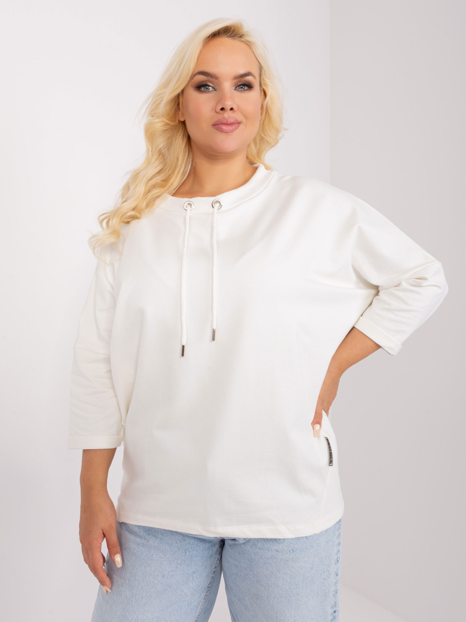 Ecru luźna bluzka damska plus size.