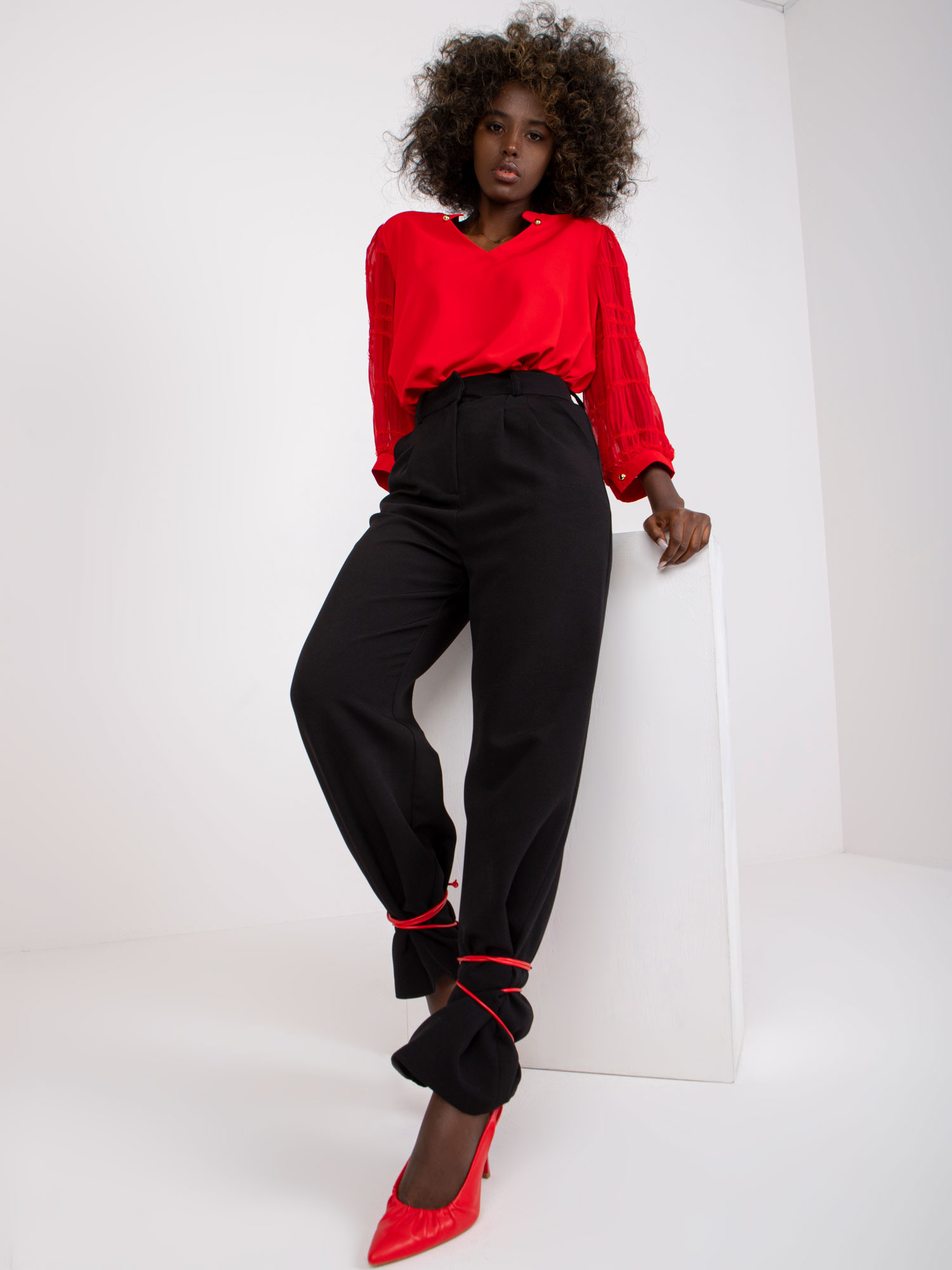 Wymiary bluzki w rozmiarze S/M mierzone na płasko: szerokość pod pachami – 34 cm, długość rękawa – 56 cm, długość całkowita – 57 cm.