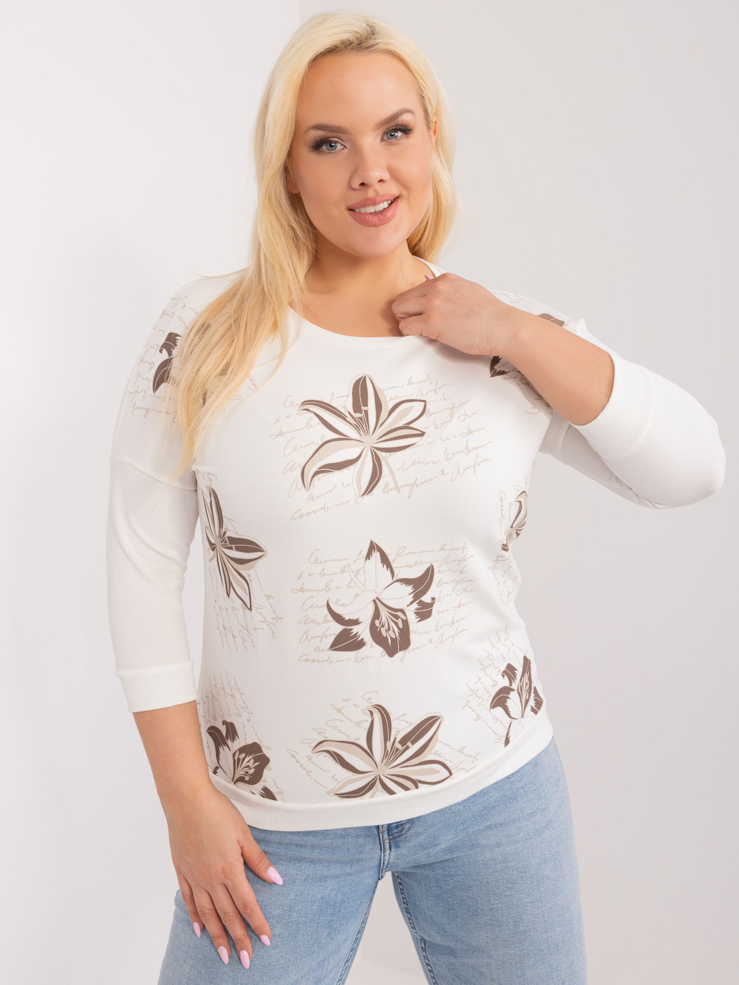 Wymiary bluzki w rozmiarze one size mierzone na płasko: szerokość pod pachami – 62 cm, długość rękawa – 38 cm, długość całkowita – 60 cm .
