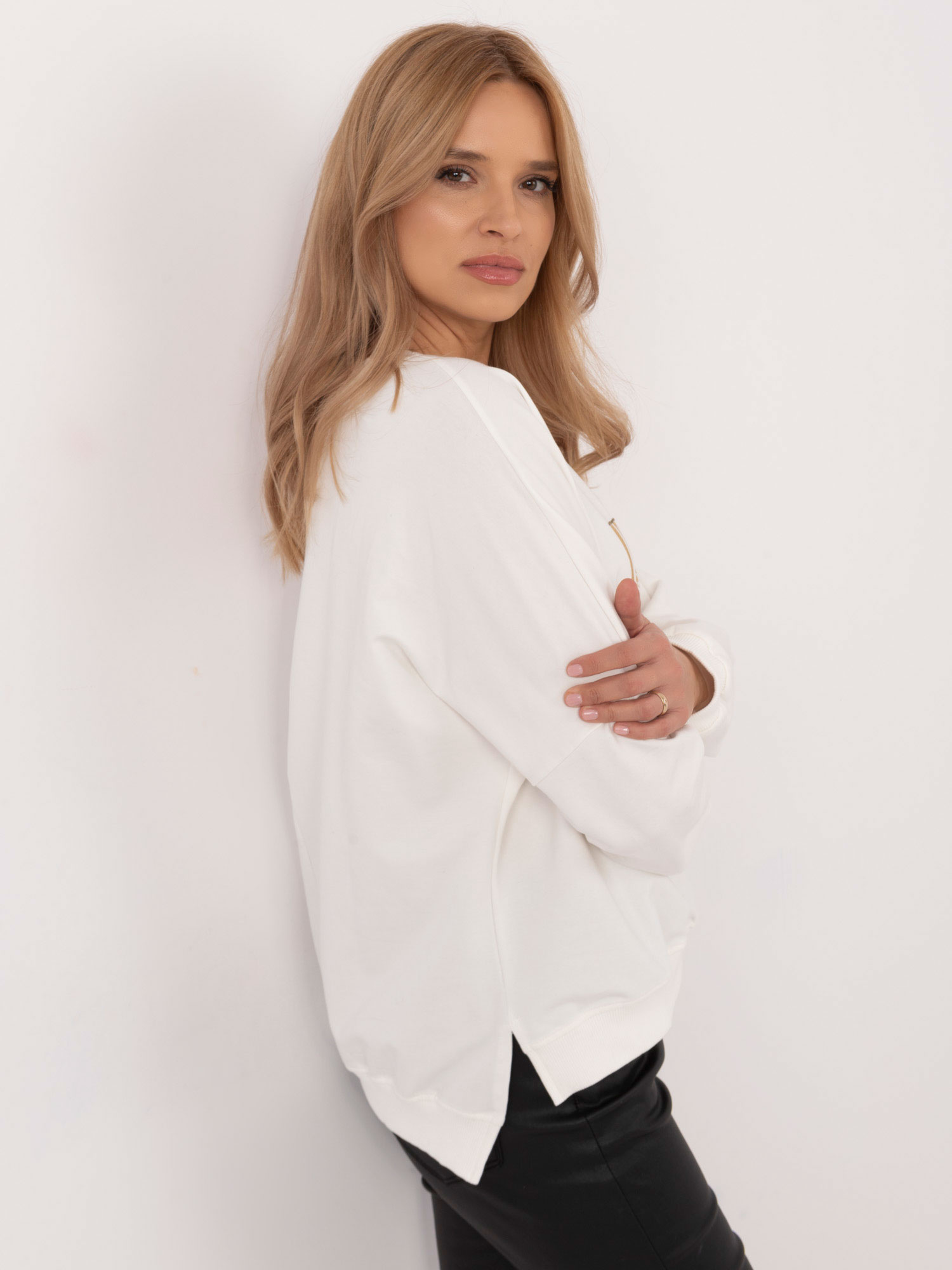 Wymiary bluzki w rozmiarze S mierzone na płasko: szerokość pod pachami – 65 cm, długość bluzy – 63 cm (przód), długość bluzy – 66 cm (tył), długość rękawa – 41 cm (od szwu).