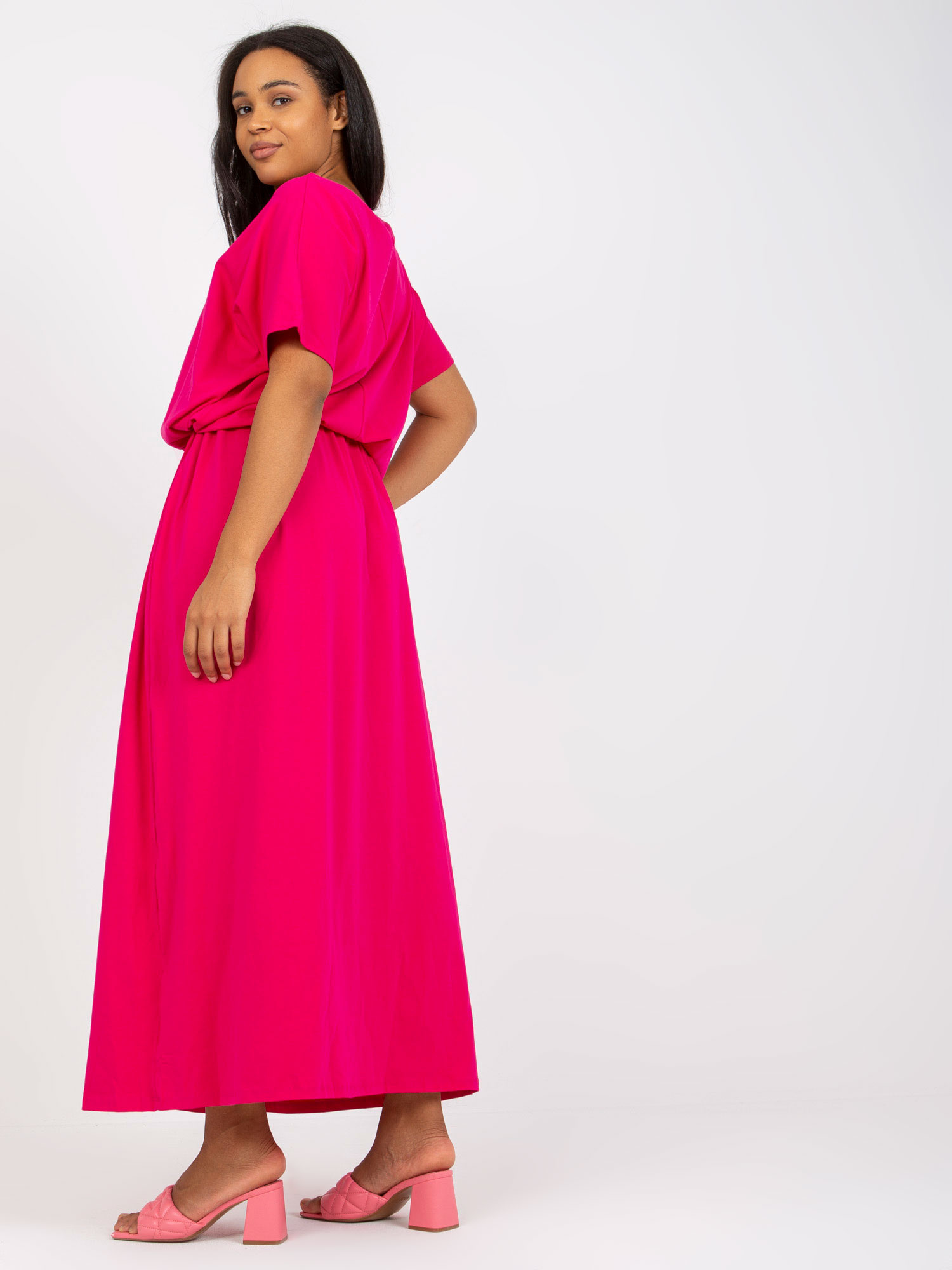 Fuksjowa damska bluzka basic z krótkim rękawem .